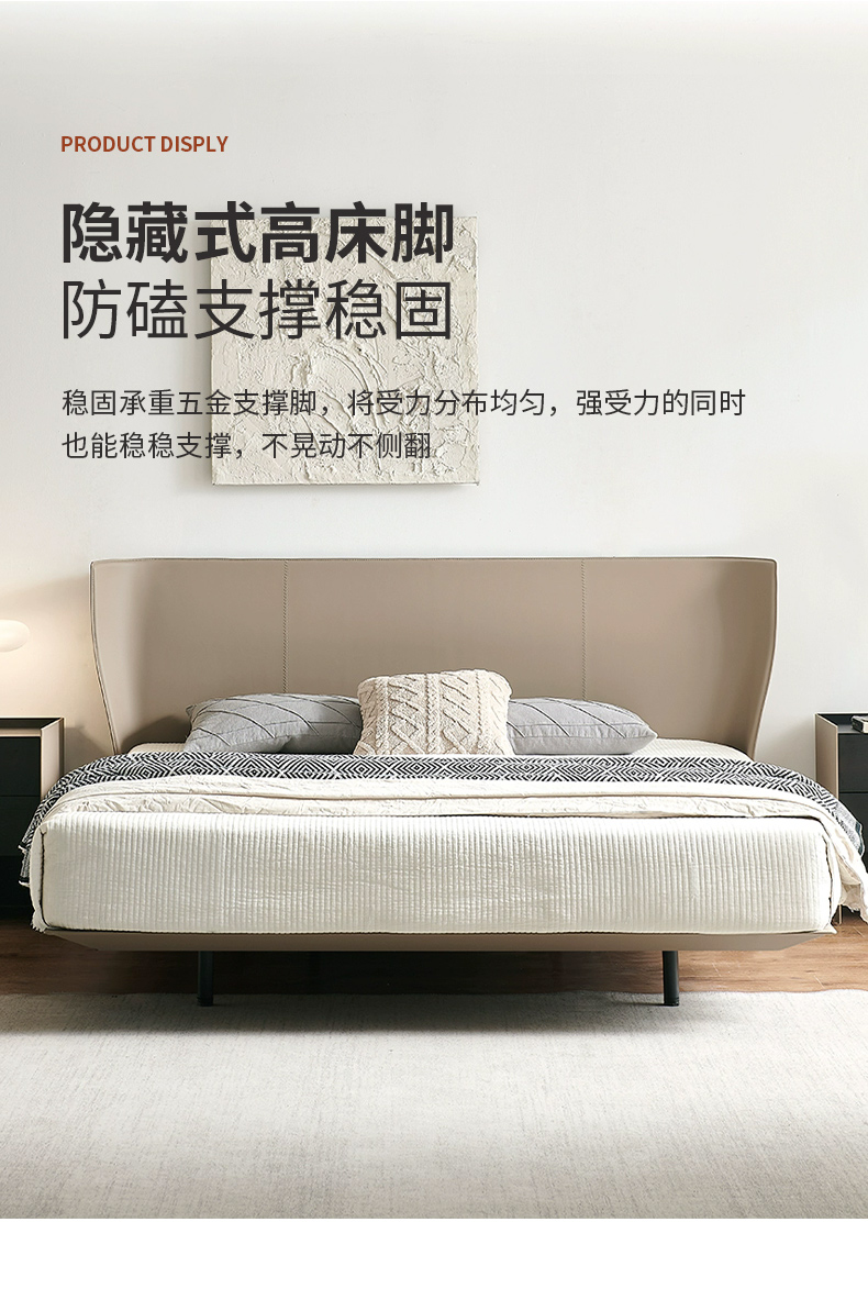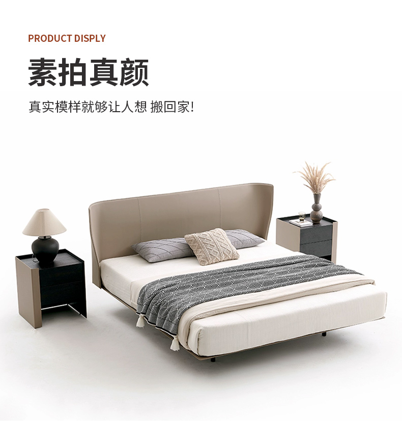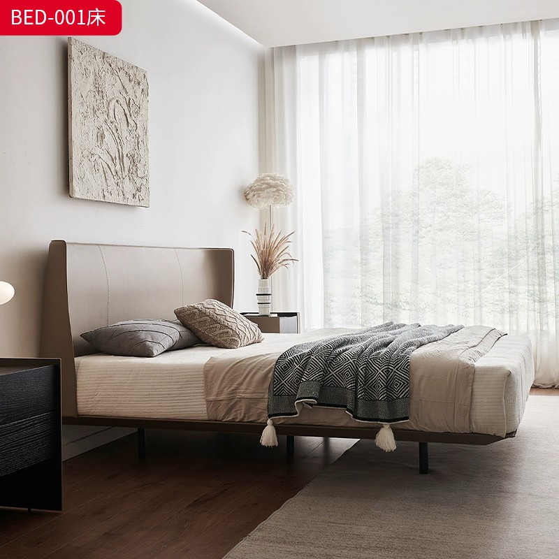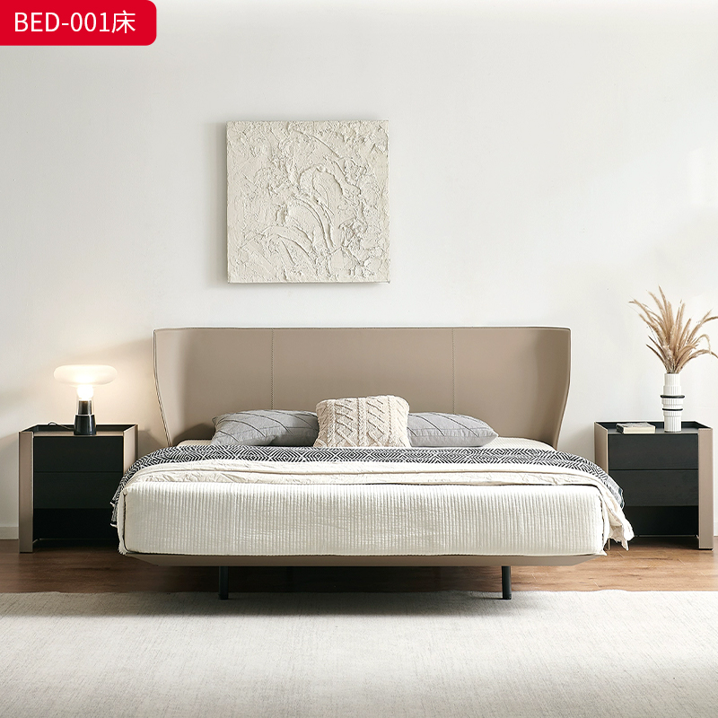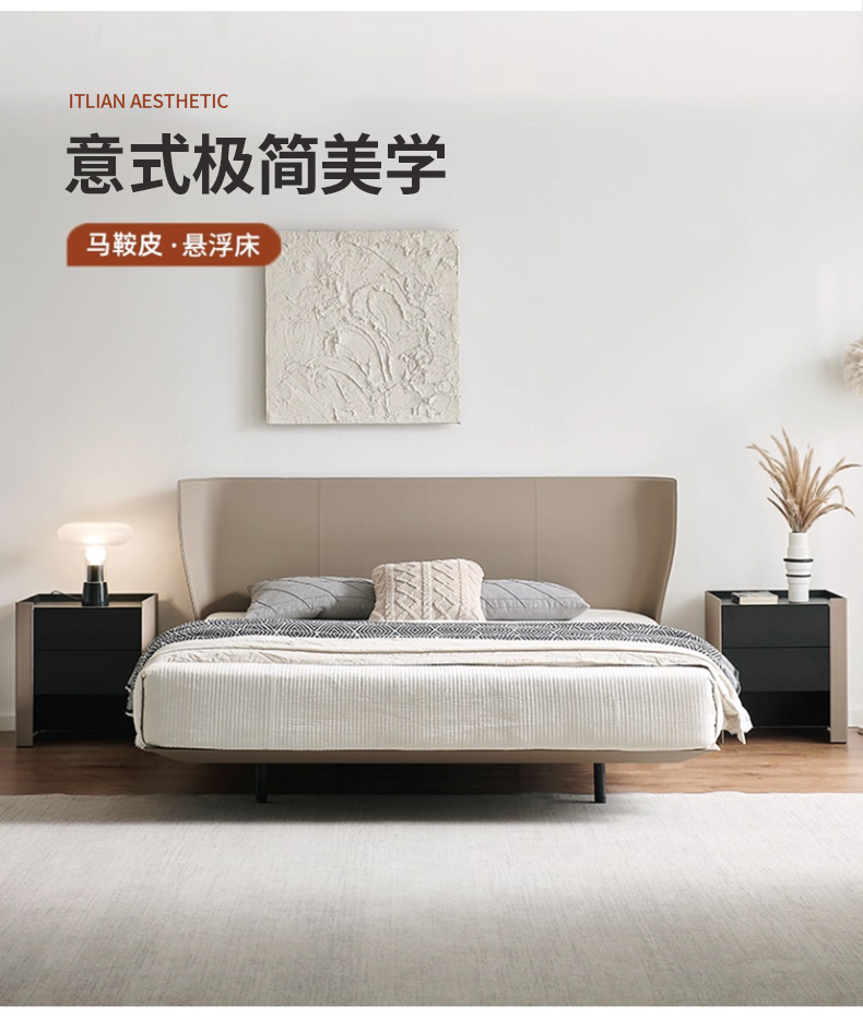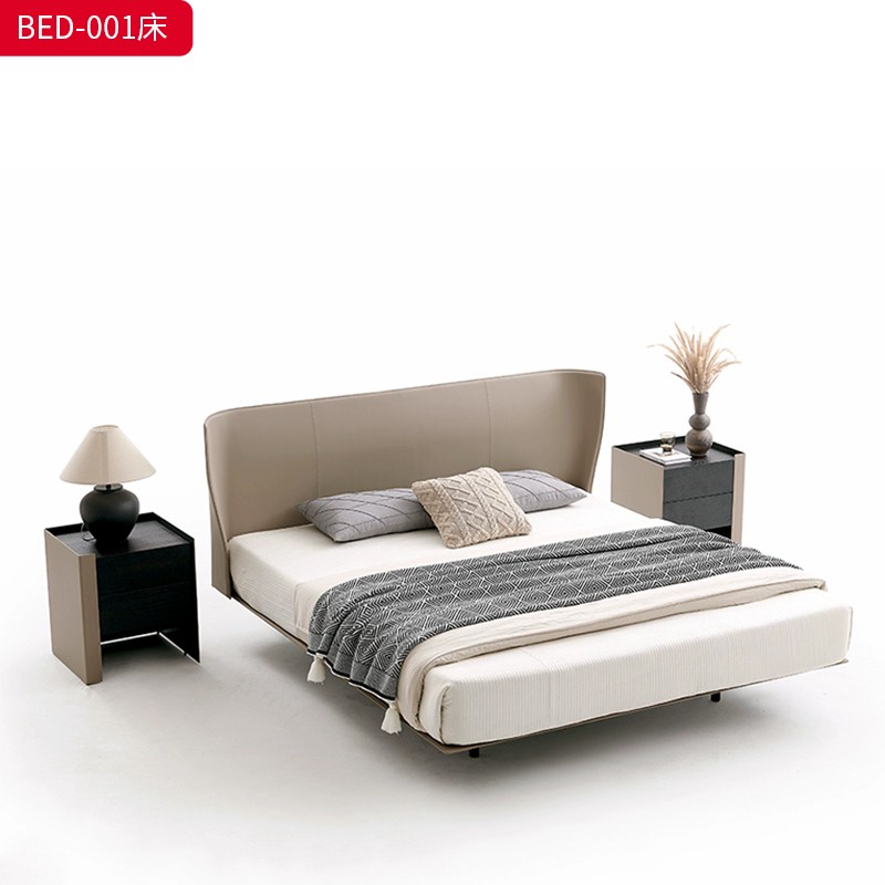 千匠一品 意式风格 床头为铁架+马鞍革或超纤皮+海绵 床侧为铝架+马鞍革或超纤皮 时尚大气床BED-001-J
