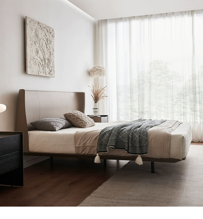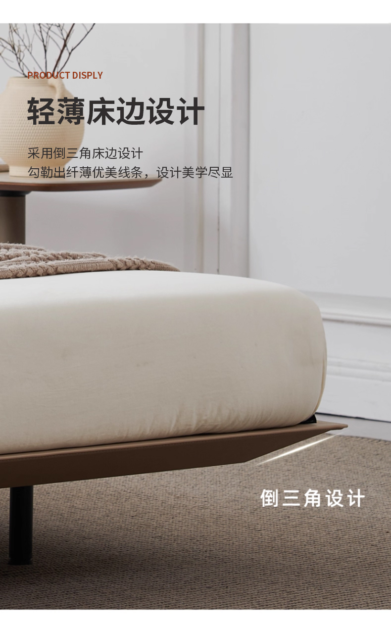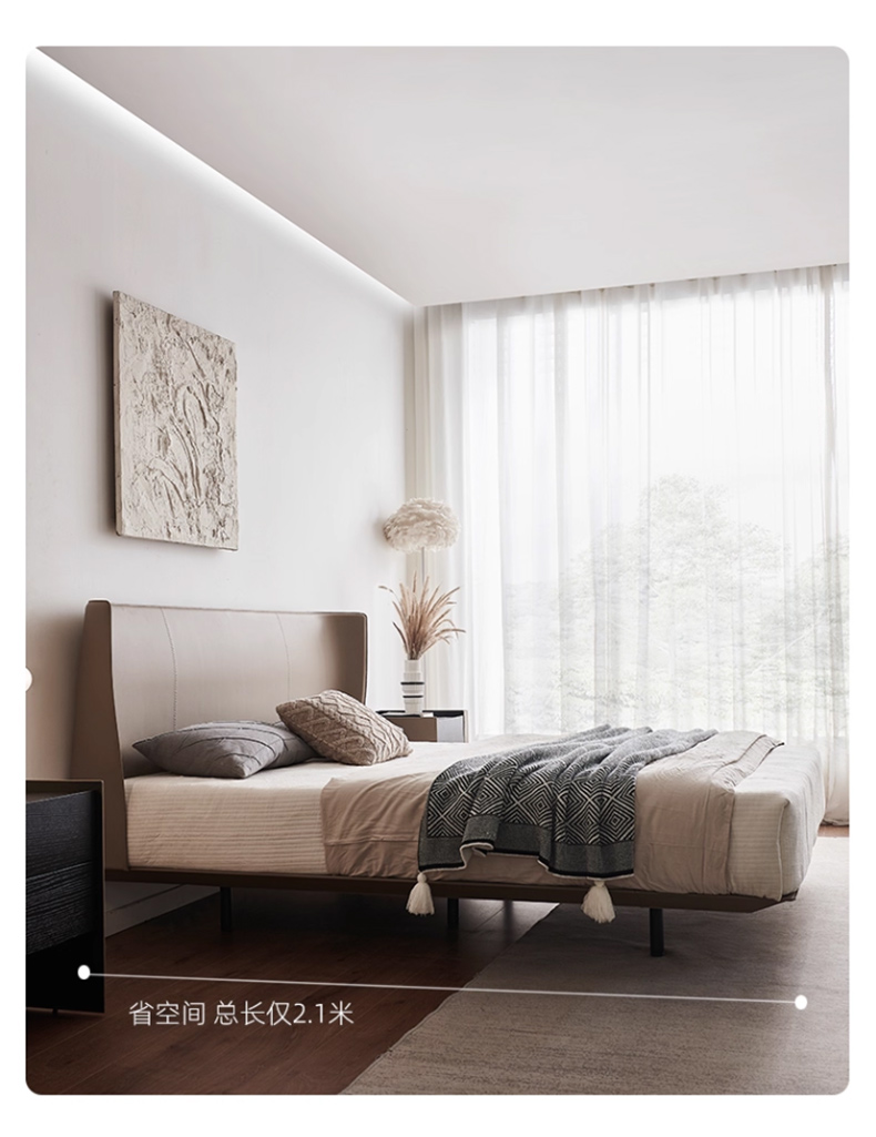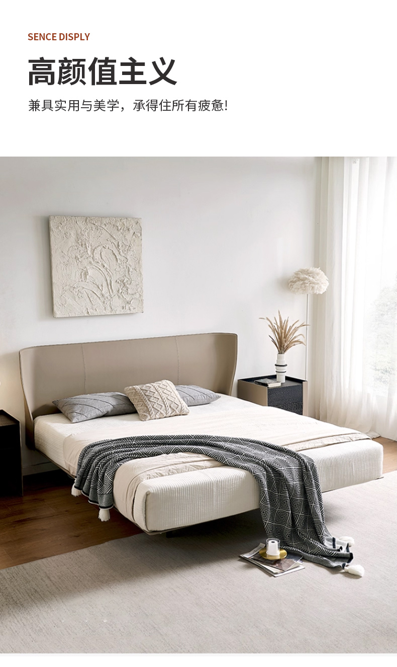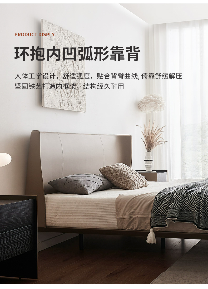 千匠一品 意式风格 床头为铁架+马鞍革或超纤皮+海绵 床侧为铝架+马鞍革或超纤皮 时尚大气床BED-001-J