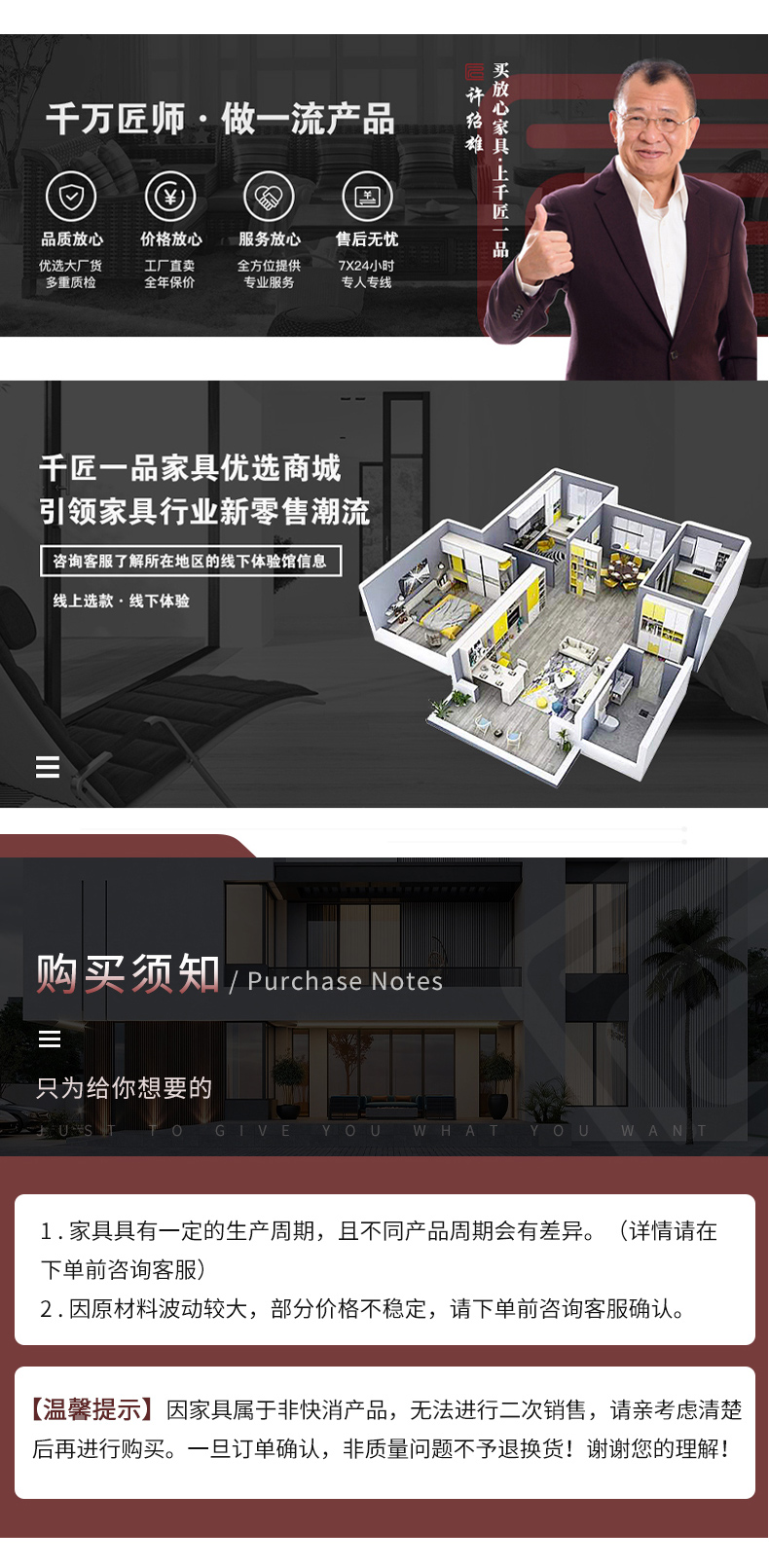 千匠一品将您购买的商品配送到家并安装,需注意该服务仅限电梯入户,若为步梯搬楼请事先与客服沟通。