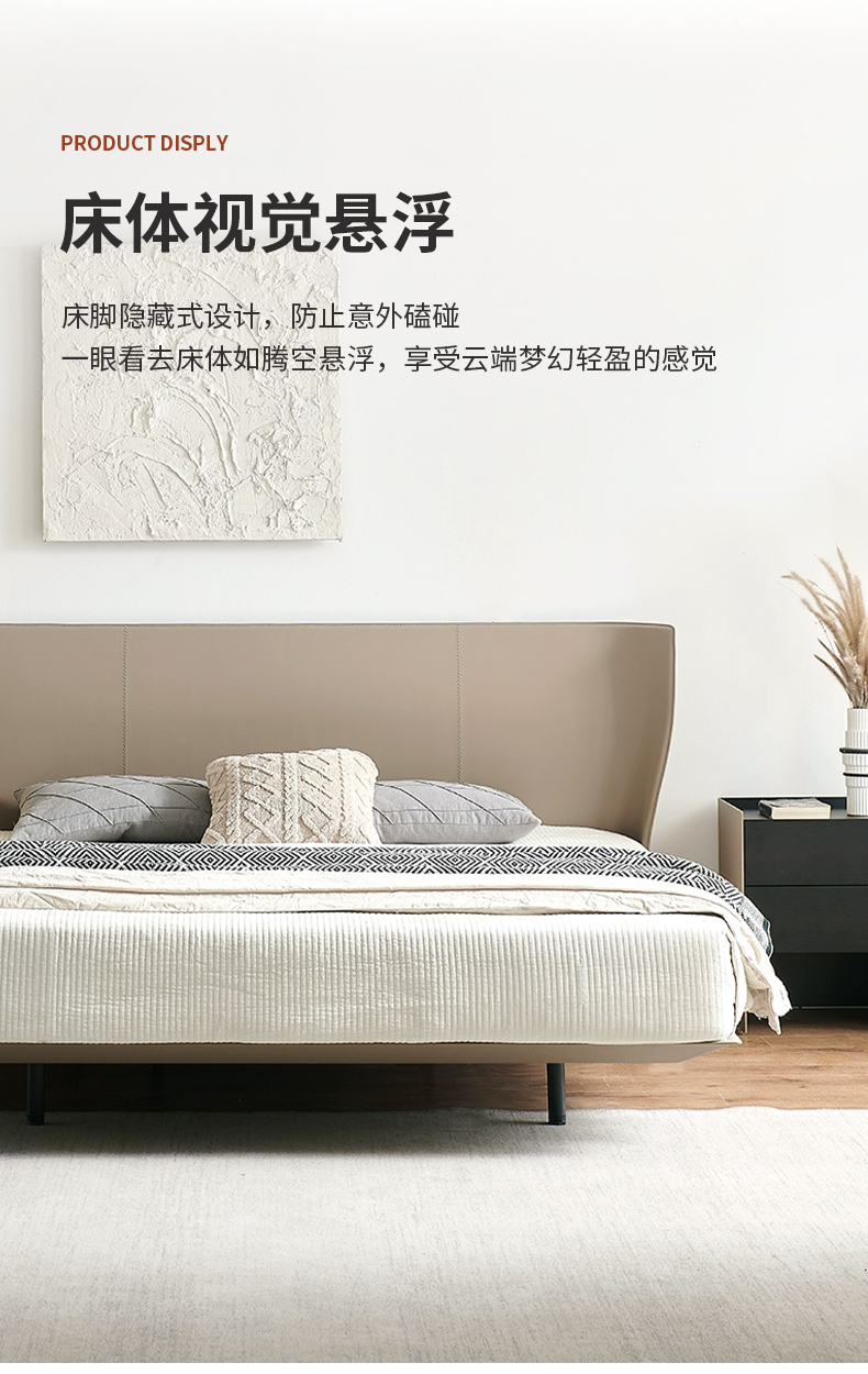 千匠一品现代极简优质头层真皮+实木框架+高回弹海绵双人床-NS19床头柜NS02-G