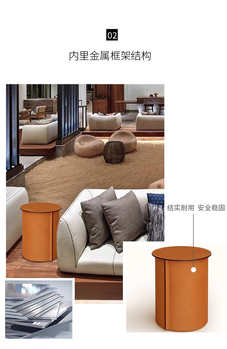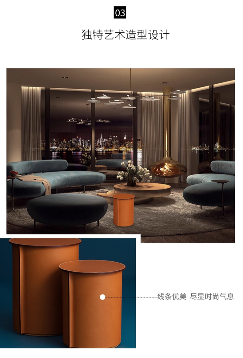 千匠一品 意式风格 碳素钢架+马鞍革 时尚大气茶几CJ-T004-2 CJ-T004-1-J