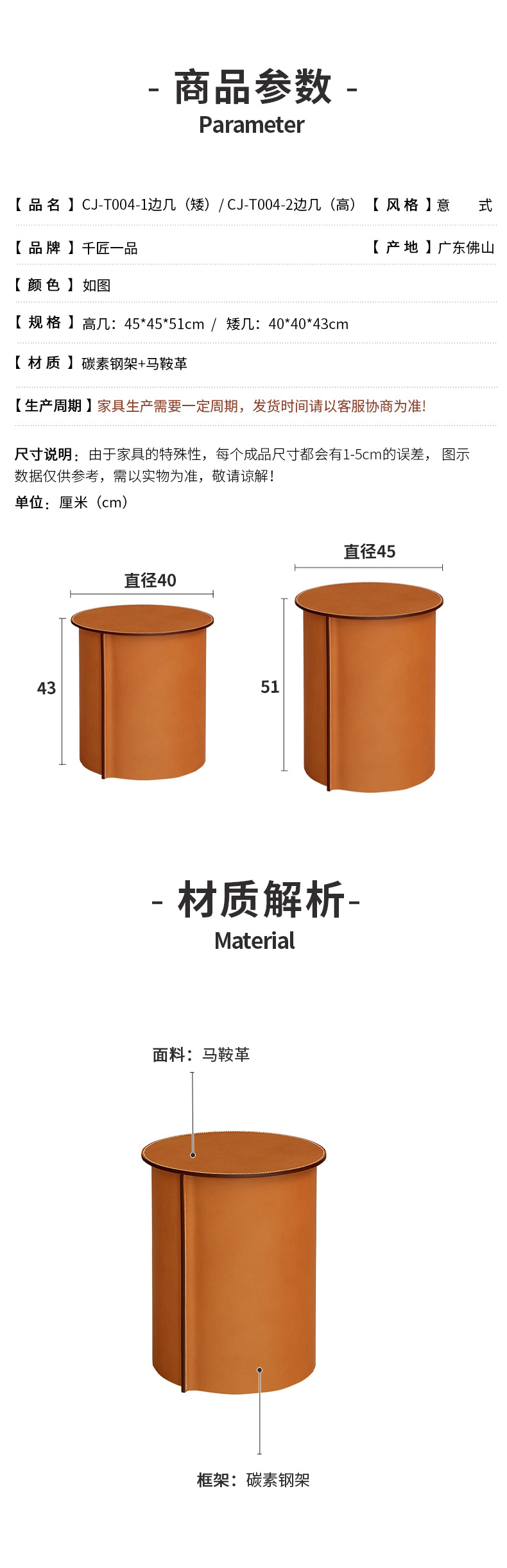 商品名称:千匠一品 意式风格 碳素钢架+马鞍革 时尚大气茶几CJ-T004-2 CJ-T004-1-J