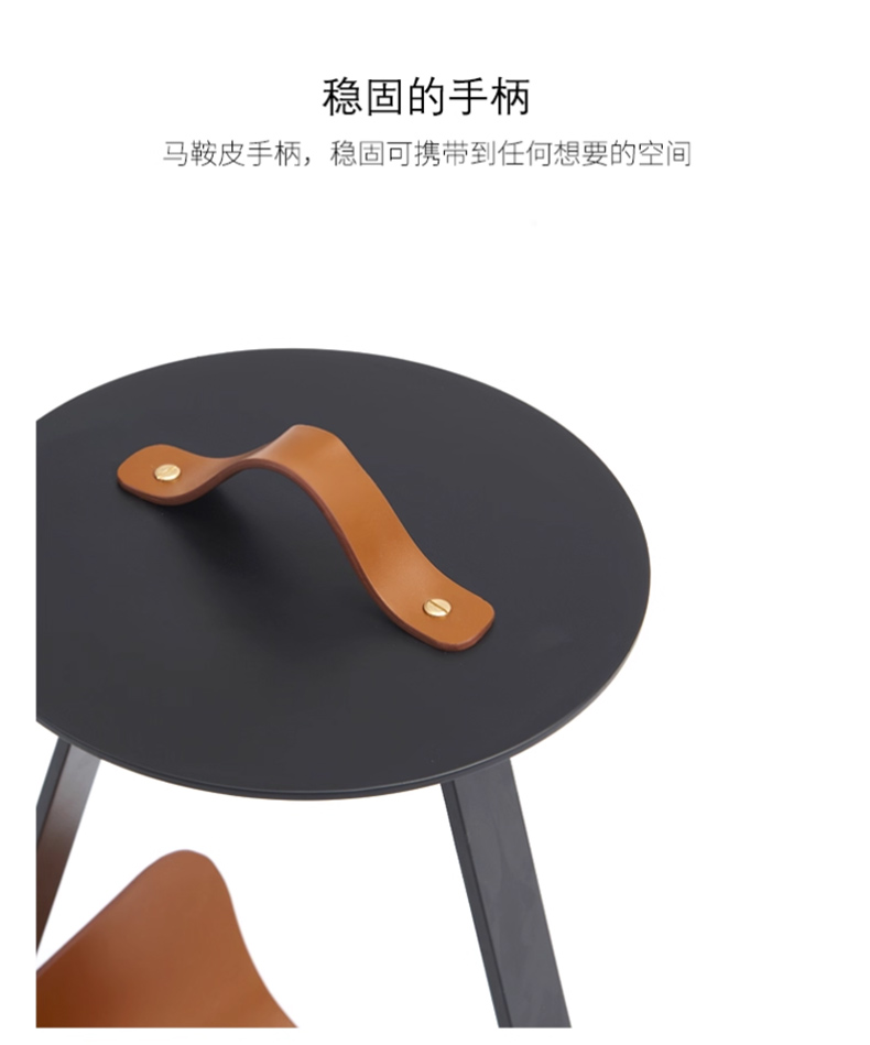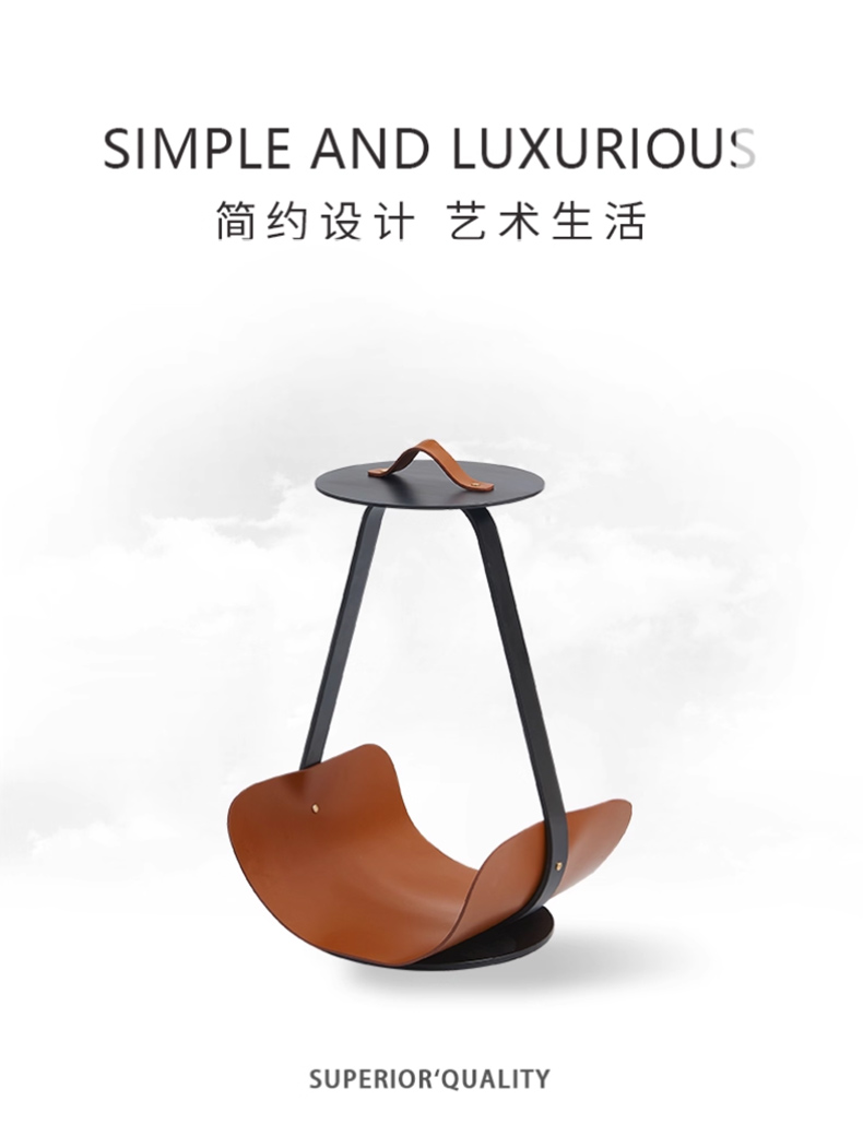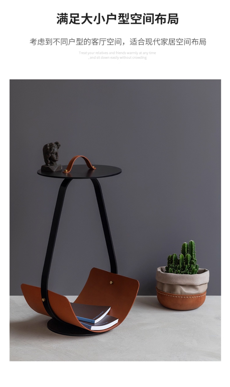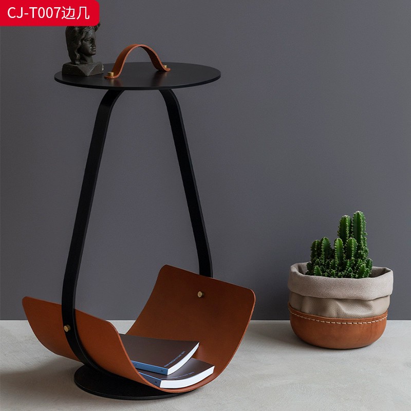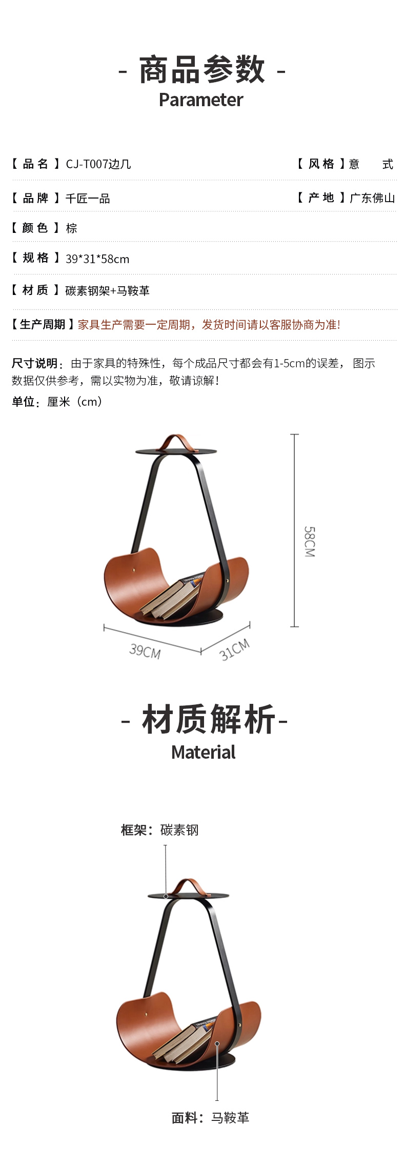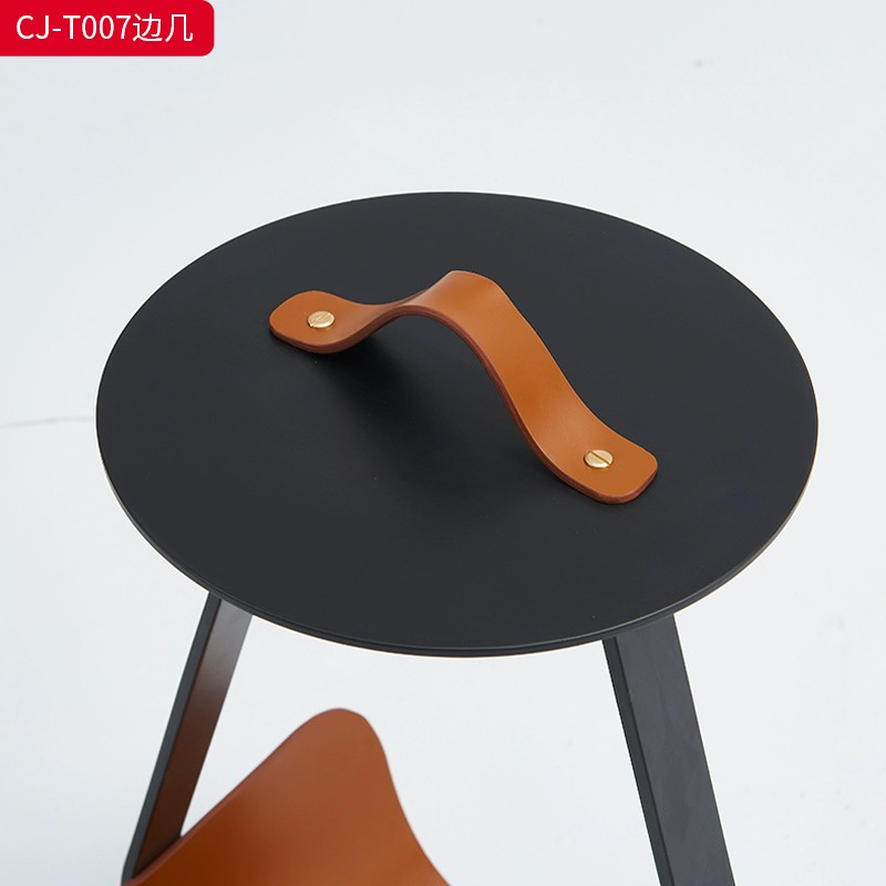 千匠一品 意式风格 碳素钢架+马鞍革 时尚大气边几CJ-T007-J