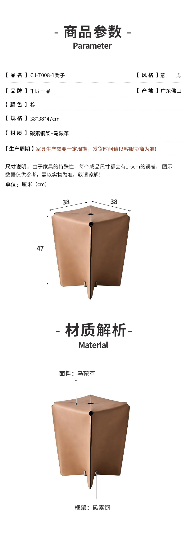 千匠一品 意式风格 碳素钢架+马鞍革 时尚大气凳子CJ-T008-1-J