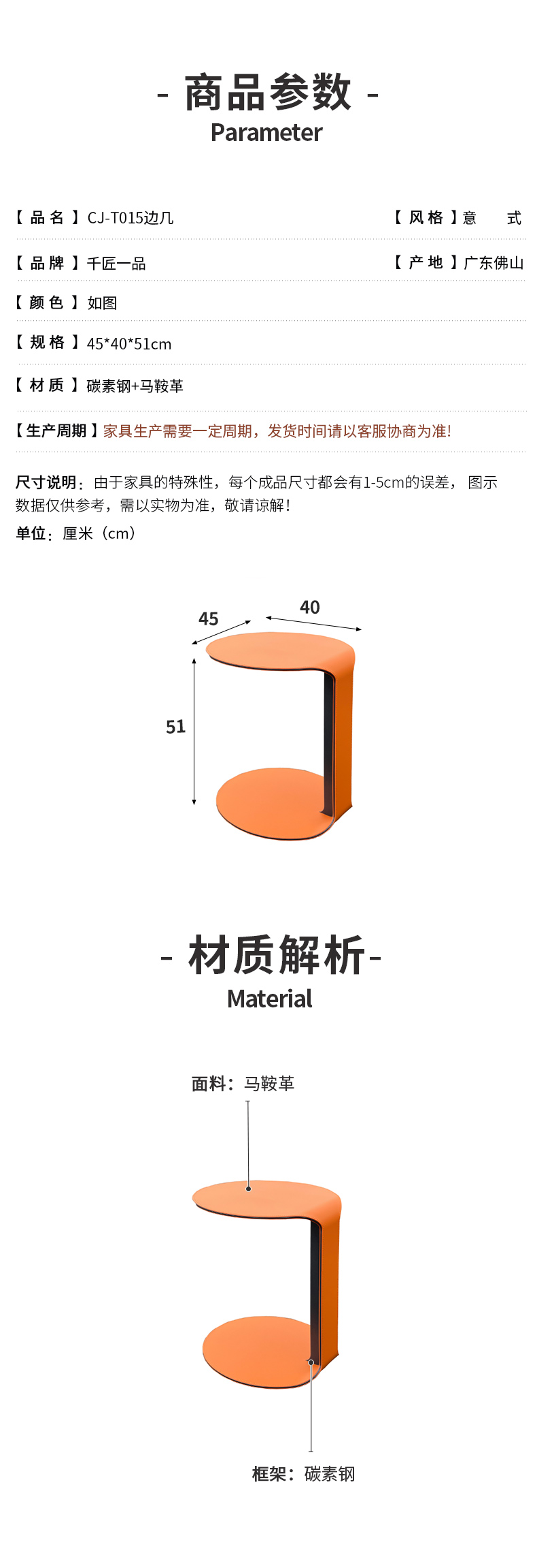 商品名称:千匠一品 意式风格 碳素钢+马鞍革 时尚大气茶几CJ-T015-J