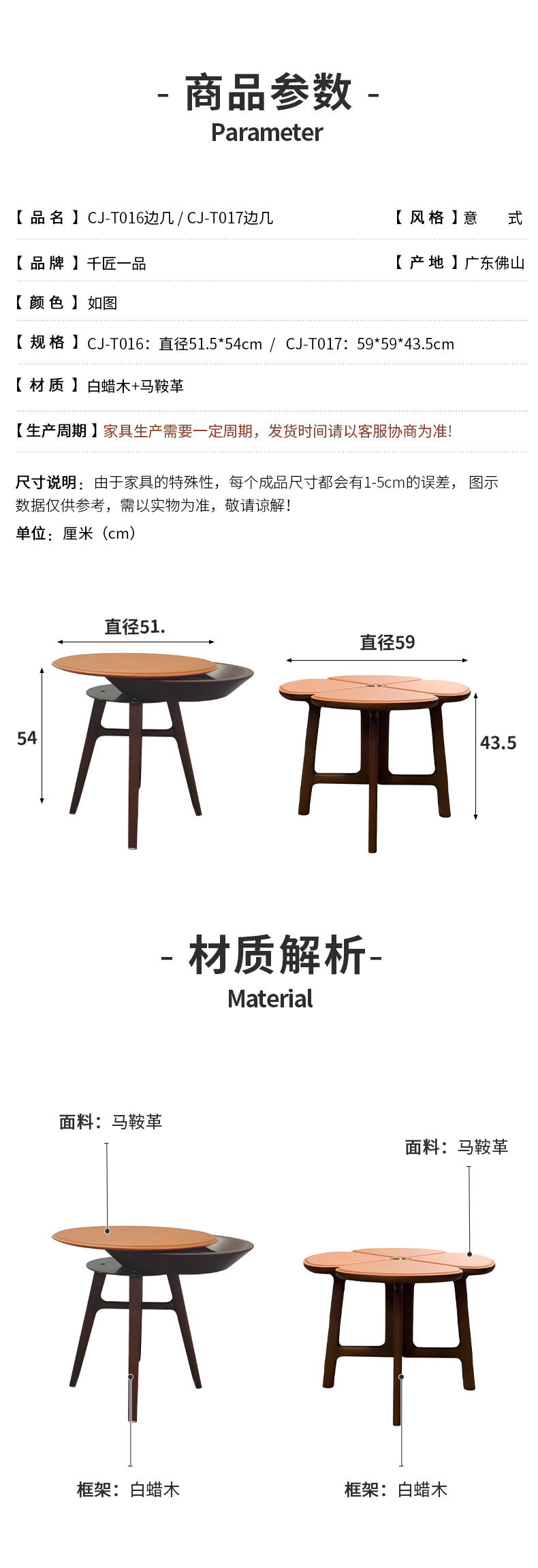 商品名称:千匠一品 意式风格 白蜡木+马鞍革 时尚大气茶几CJ-T016 CJ-T017-J