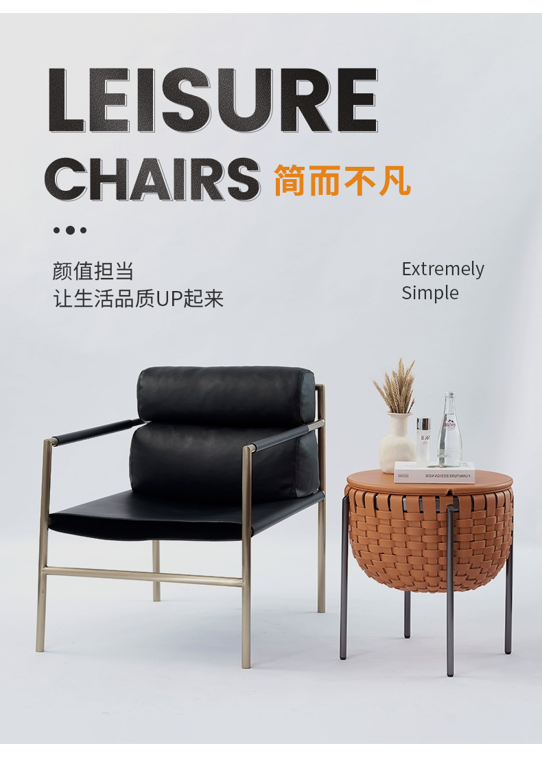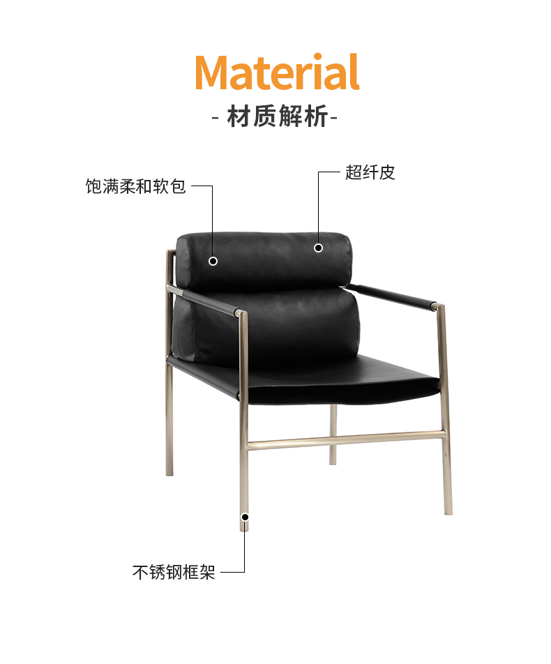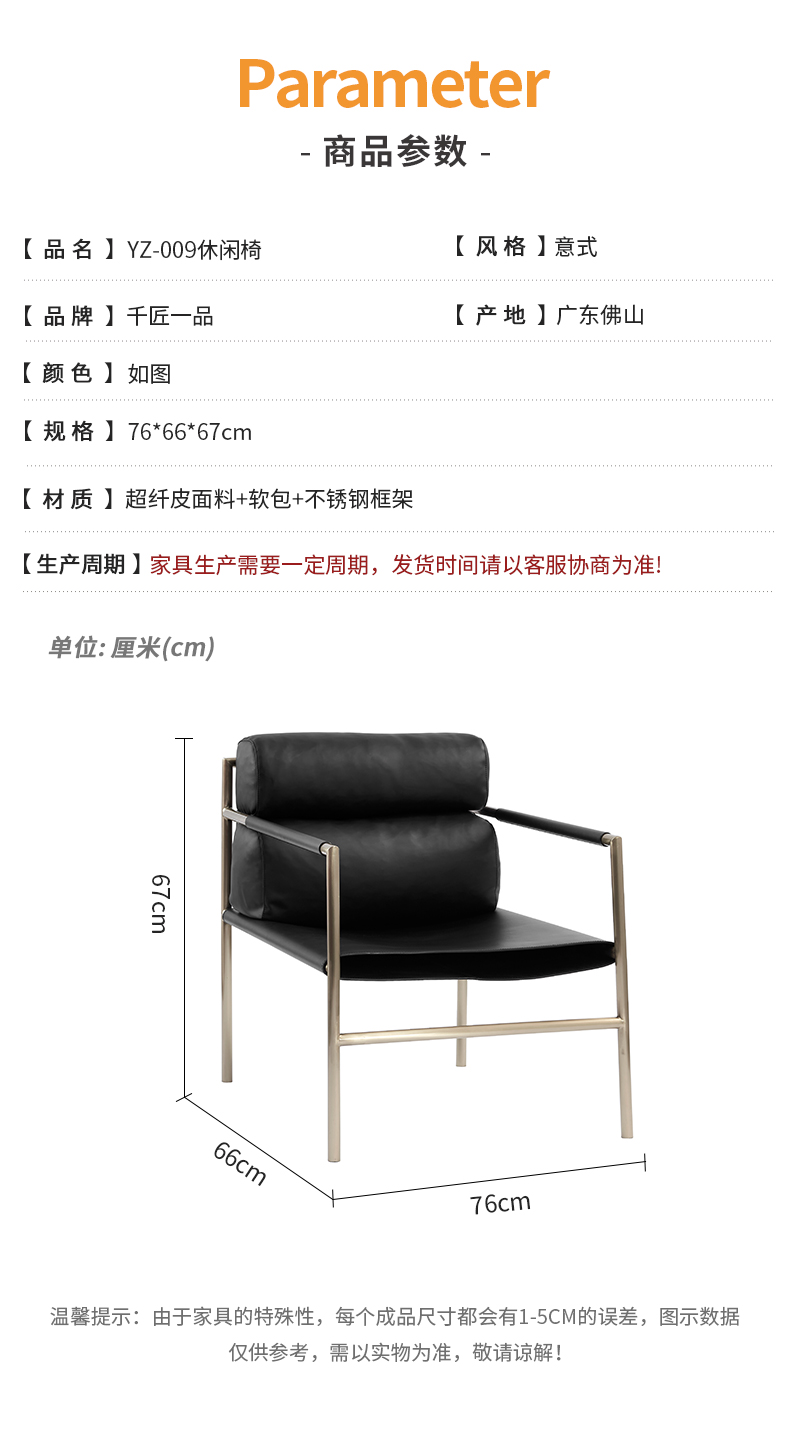 千匠一品 意式风格 超纤皮面料+不锈钢框架+软包 时尚大气休闲椅YZ-009-J