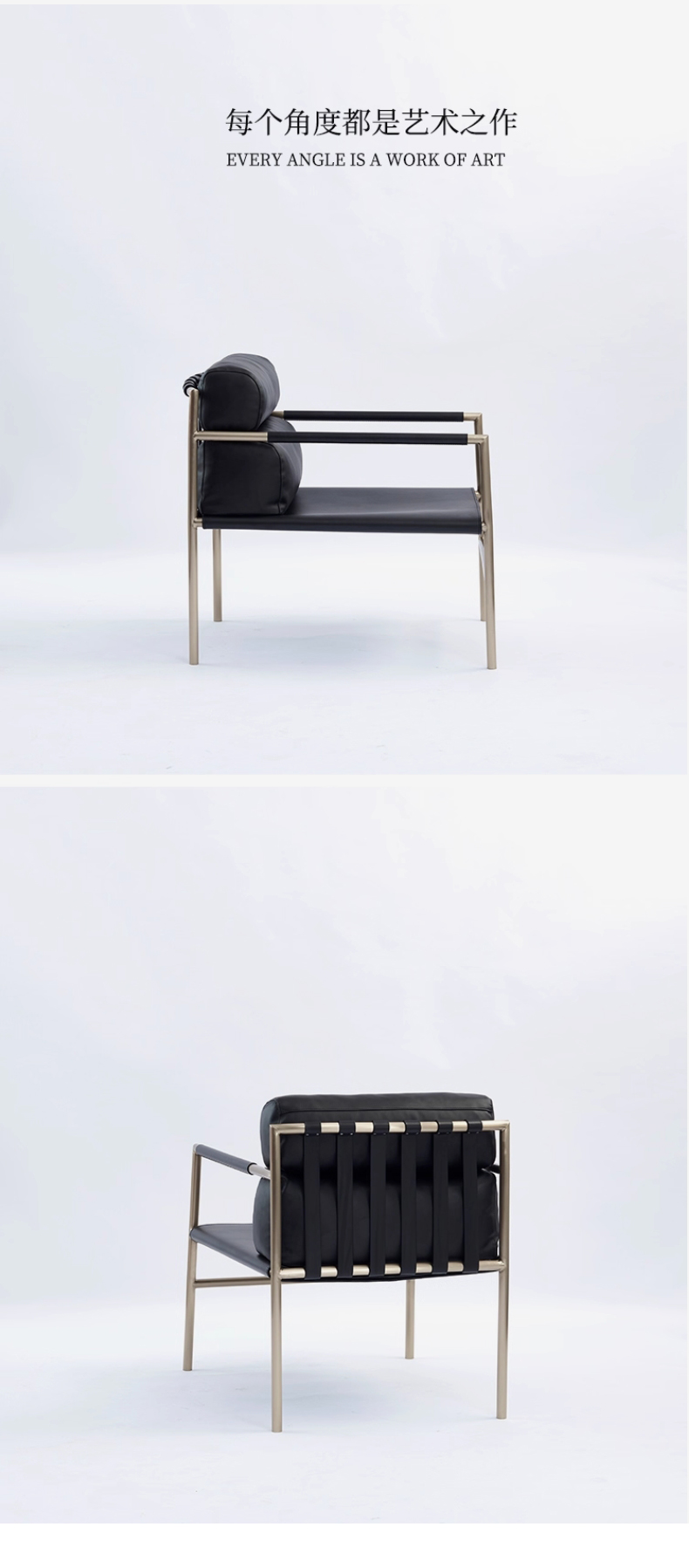 千匠一品 意式风格 双层马鞍真皮(可选双层马鞍皮超纤皮)+实心不锈钢 时尚大气休闲椅YZ-008-J
