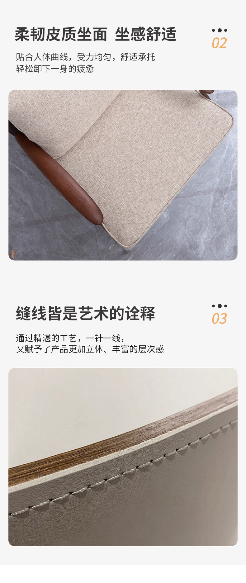 千匠一品 意式风格 马鞍超纤皮+麻布+羽绒靠包+高密度海绵座包+不锈钢框架 时尚大气墨克利扶手椅YZ-010-J