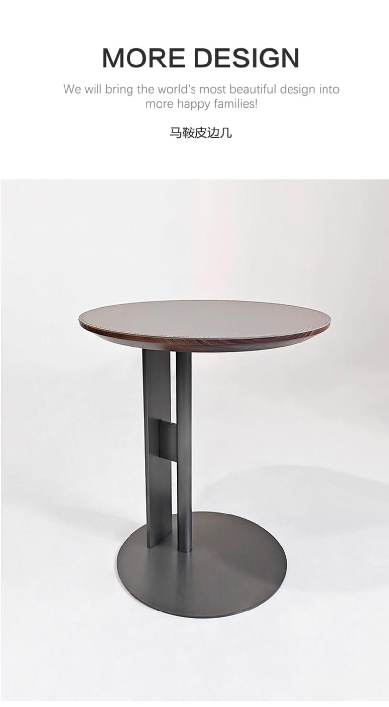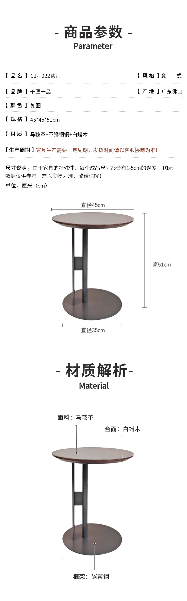 千匠一品 意式风格 马鞍革+不锈钢脚+白蜡木 时尚大气茶几CJ-T022-L