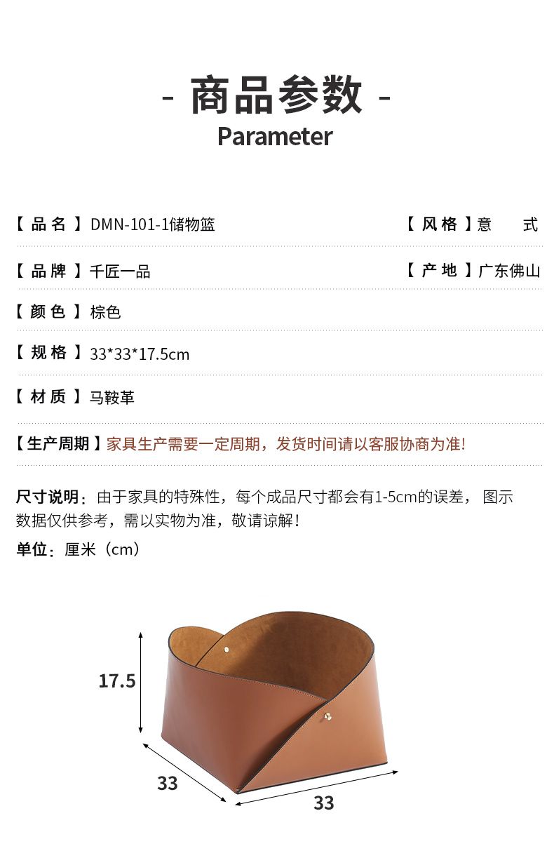 商品名称:千匠一品 意式风格 马鞍革 时尚大气储物篮DMN-101-1-L