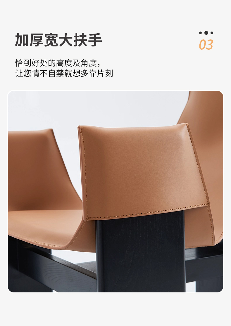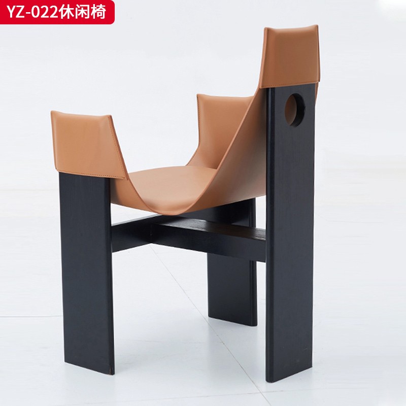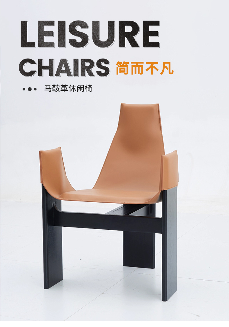 千匠一品 意式风格 马鞍皮+白蜡木 时尚大气休闲椅YZ-022-L