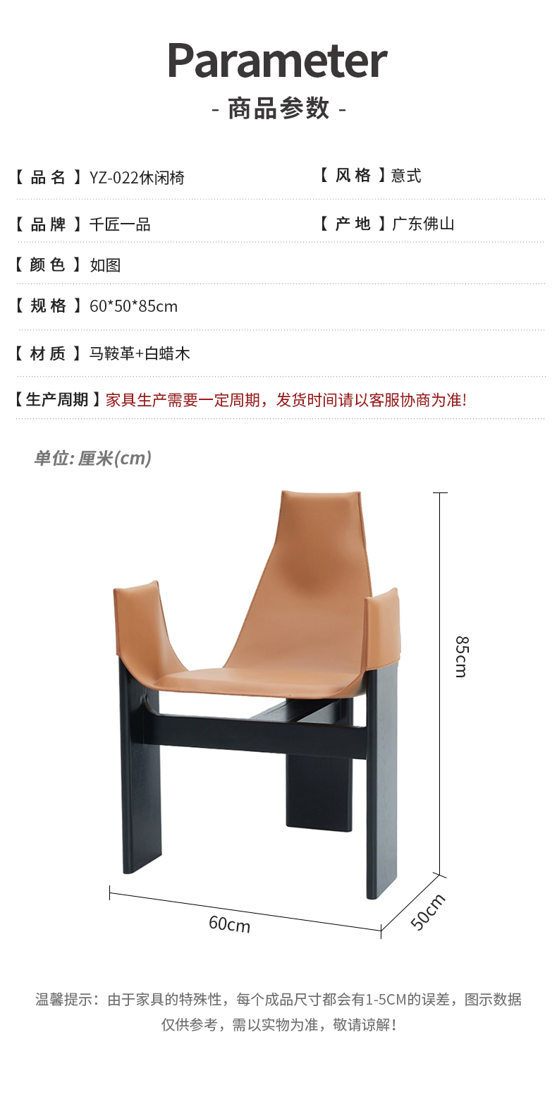 商品名称:千匠一品 意式风格 马鞍皮+白蜡木 时尚大气休闲椅YZ-022-L