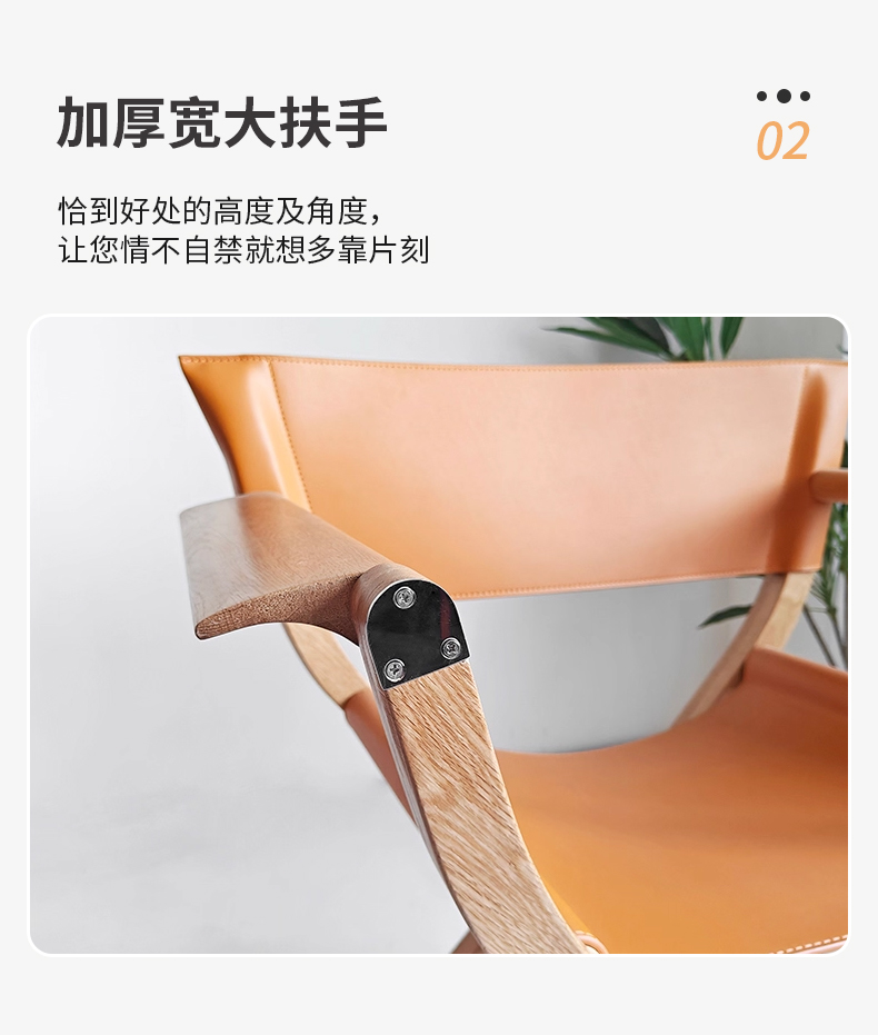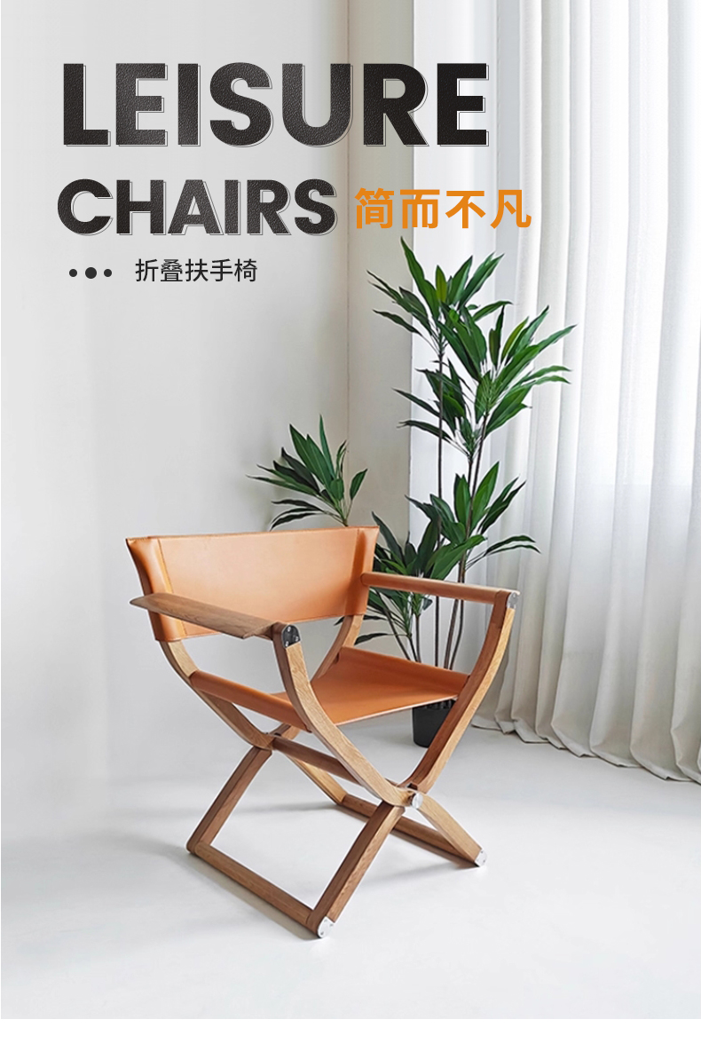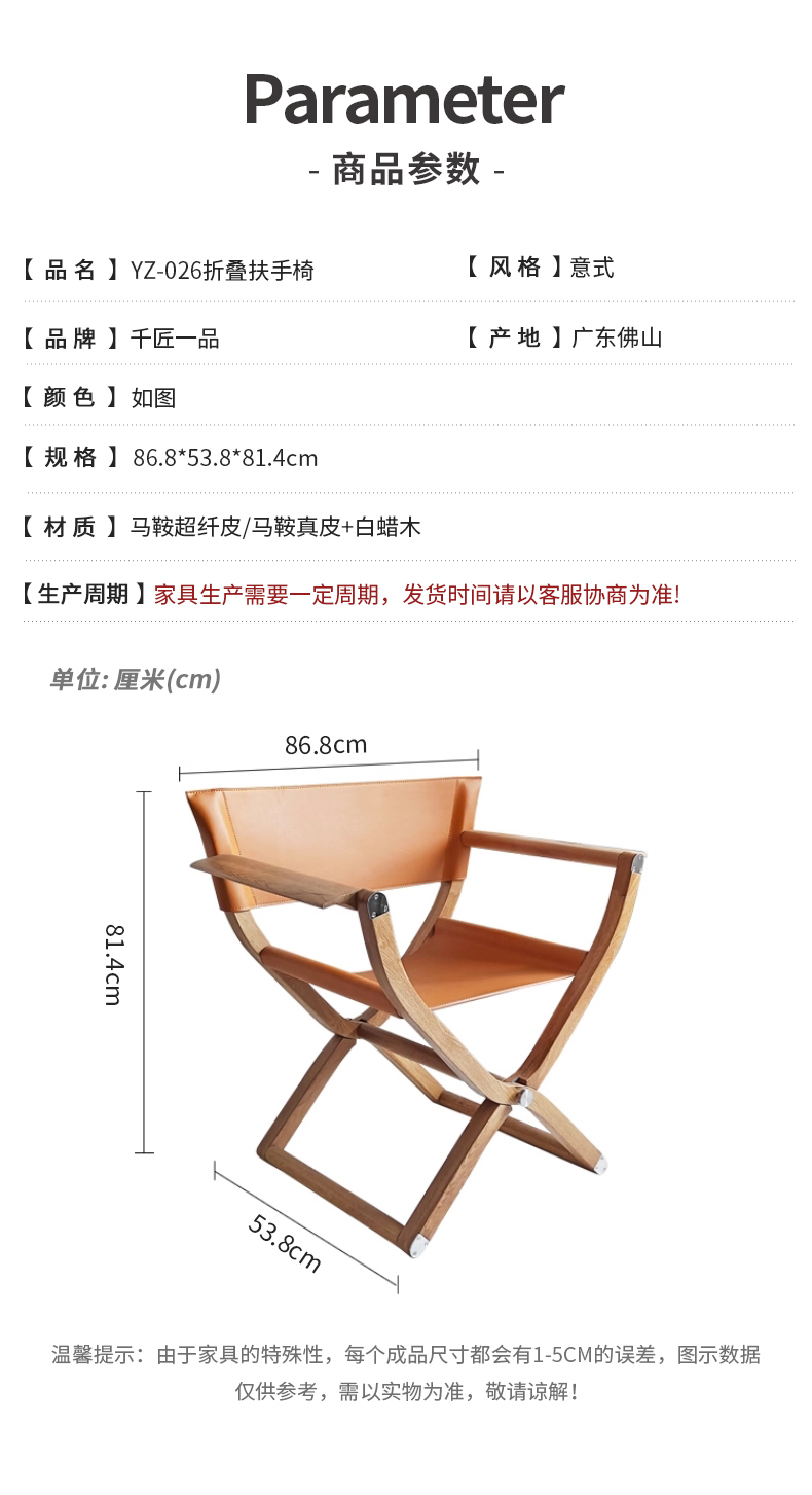 千匠一品 意式风格 马鞍超纤皮 马鞍真皮+白蜡木 时尚大气折叠扶手椅YZ-026-L
