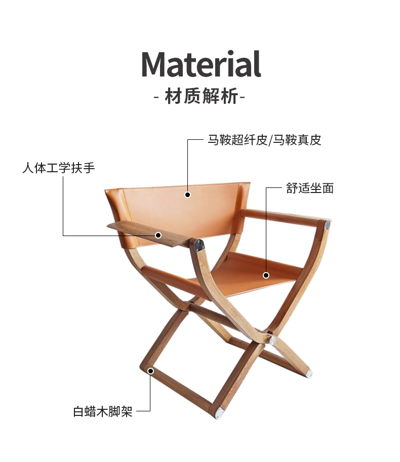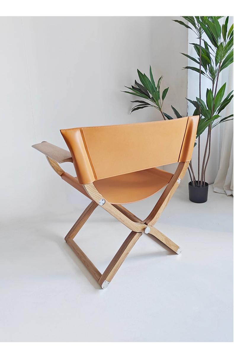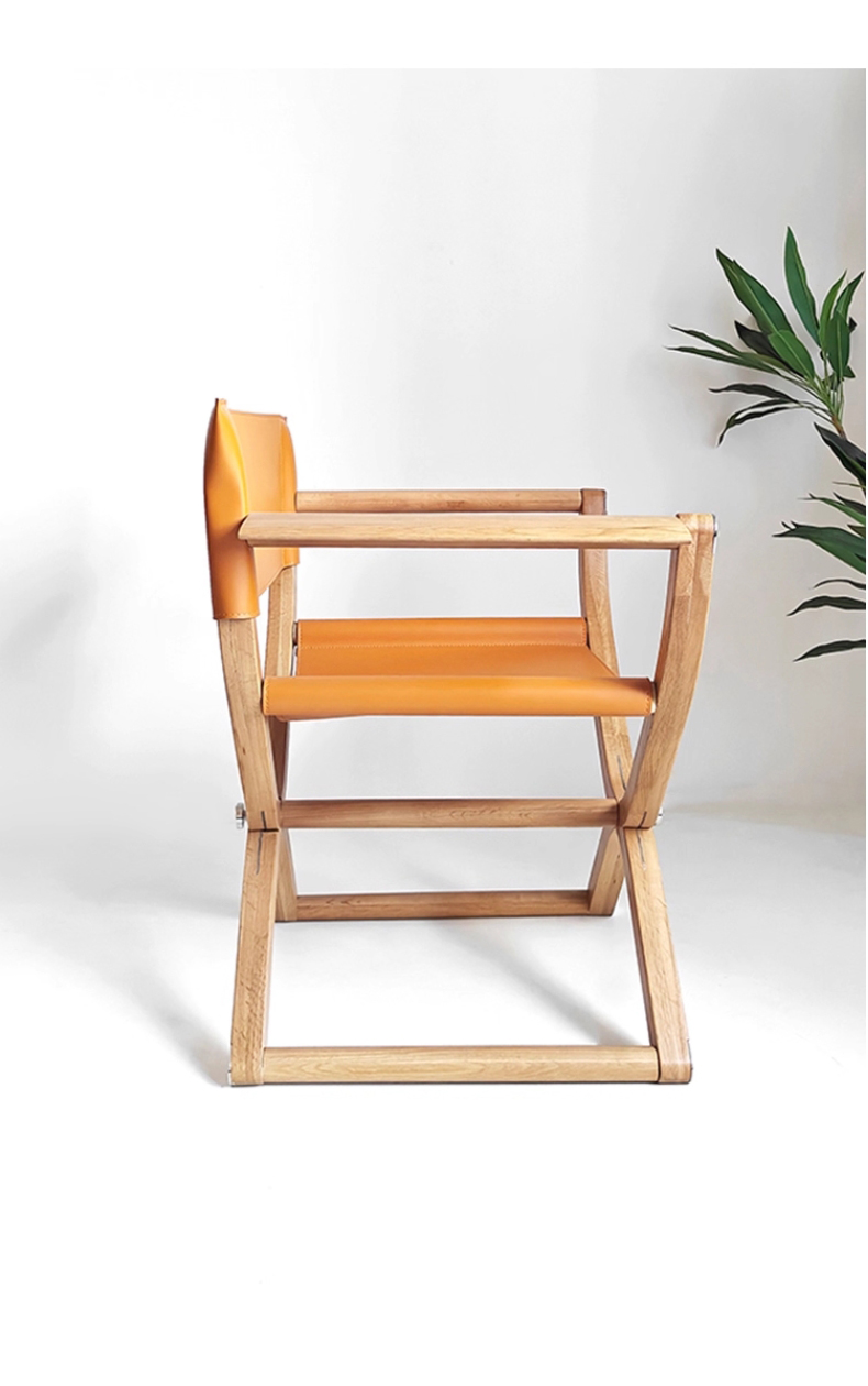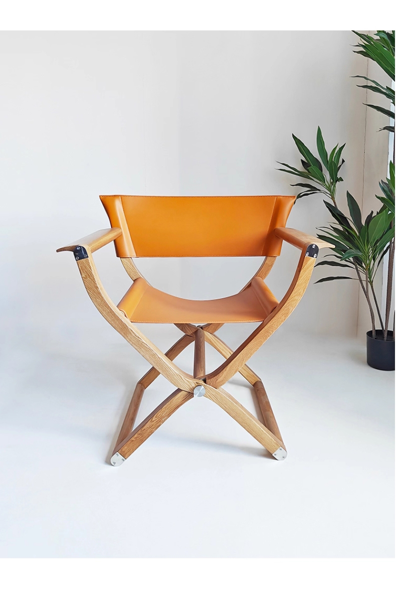 千匠一品 意式风格 马鞍超纤皮 马鞍真皮+白蜡木 时尚大气折叠扶手椅YZ-026-L
