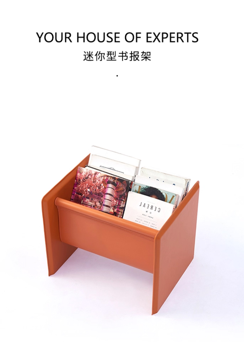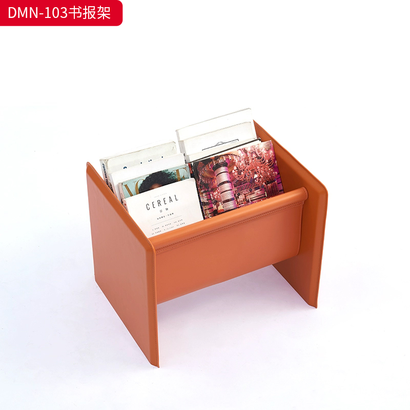 千匠一品 意式风格 不锈钢架+马鞍皮 时尚大气书报架DMN-103-J