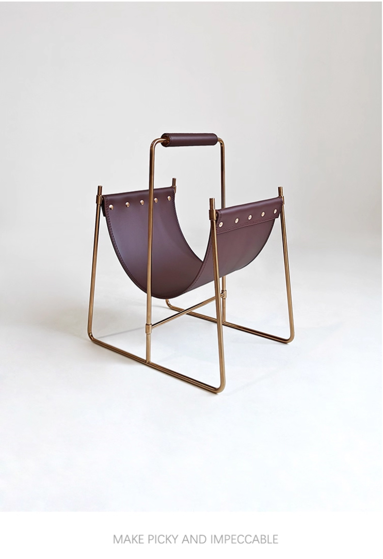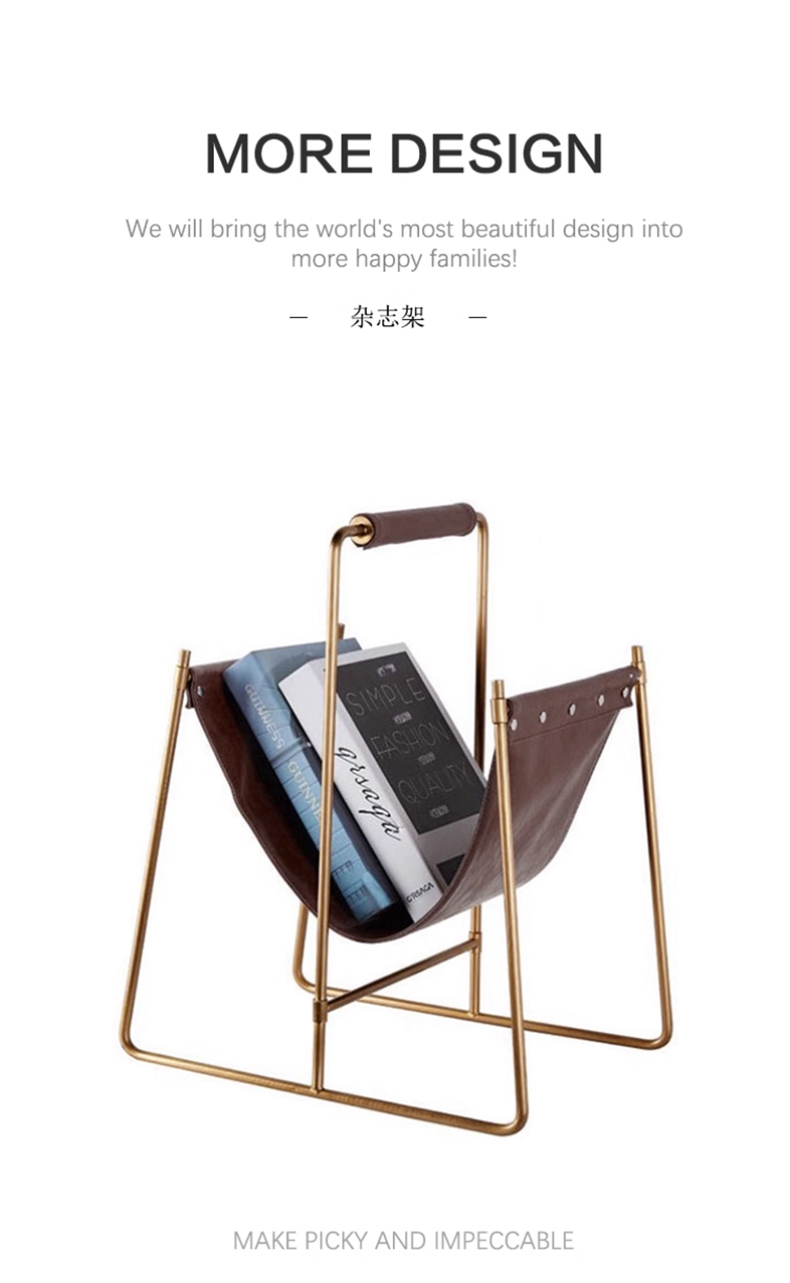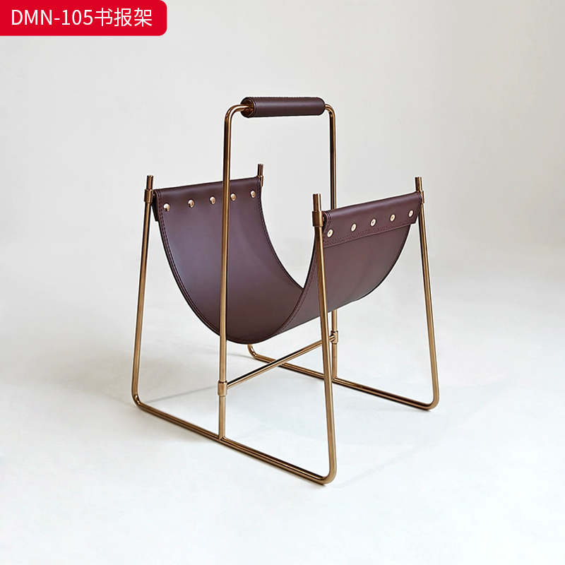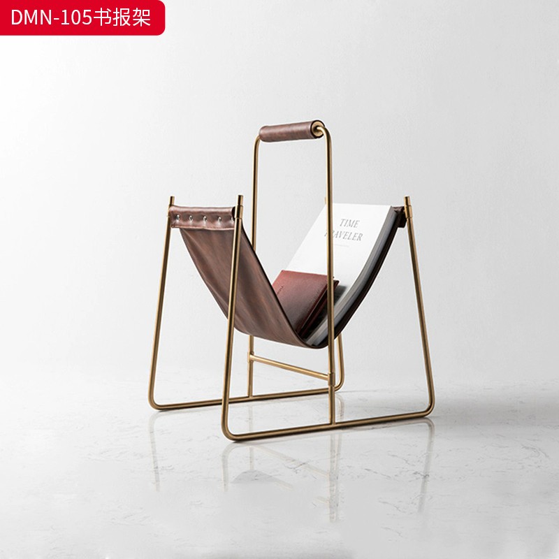 千匠一品 意式风格 不锈钢架+马鞍革 时尚大气书报架DMN-105-J