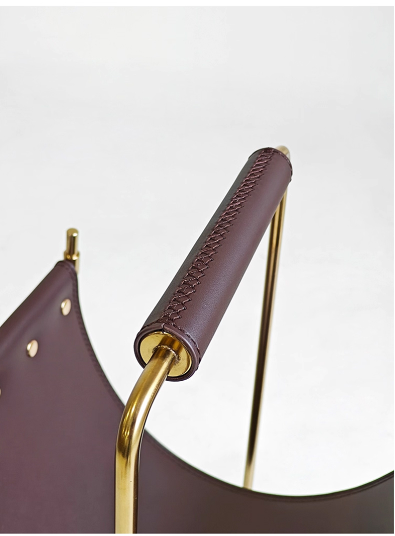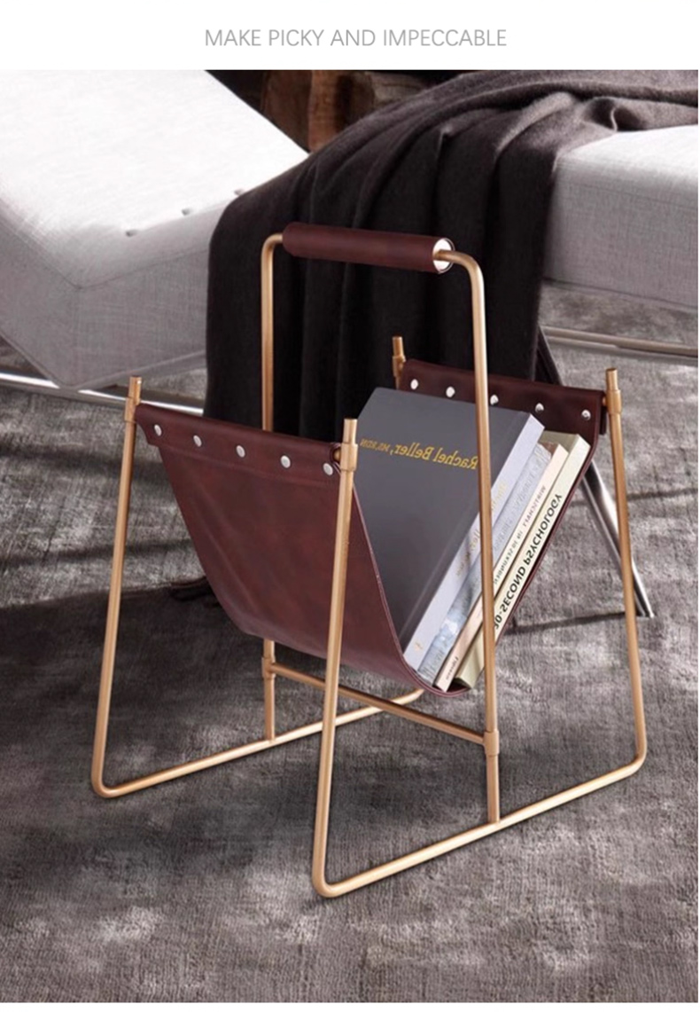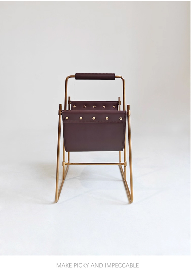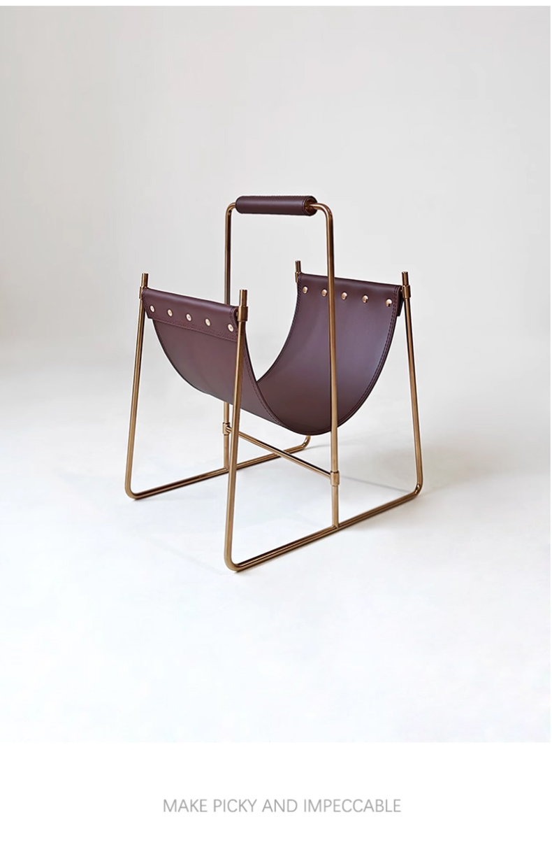 千匠一品 意式风格 不锈钢架+马鞍革 时尚大气书报架DMN-105-J