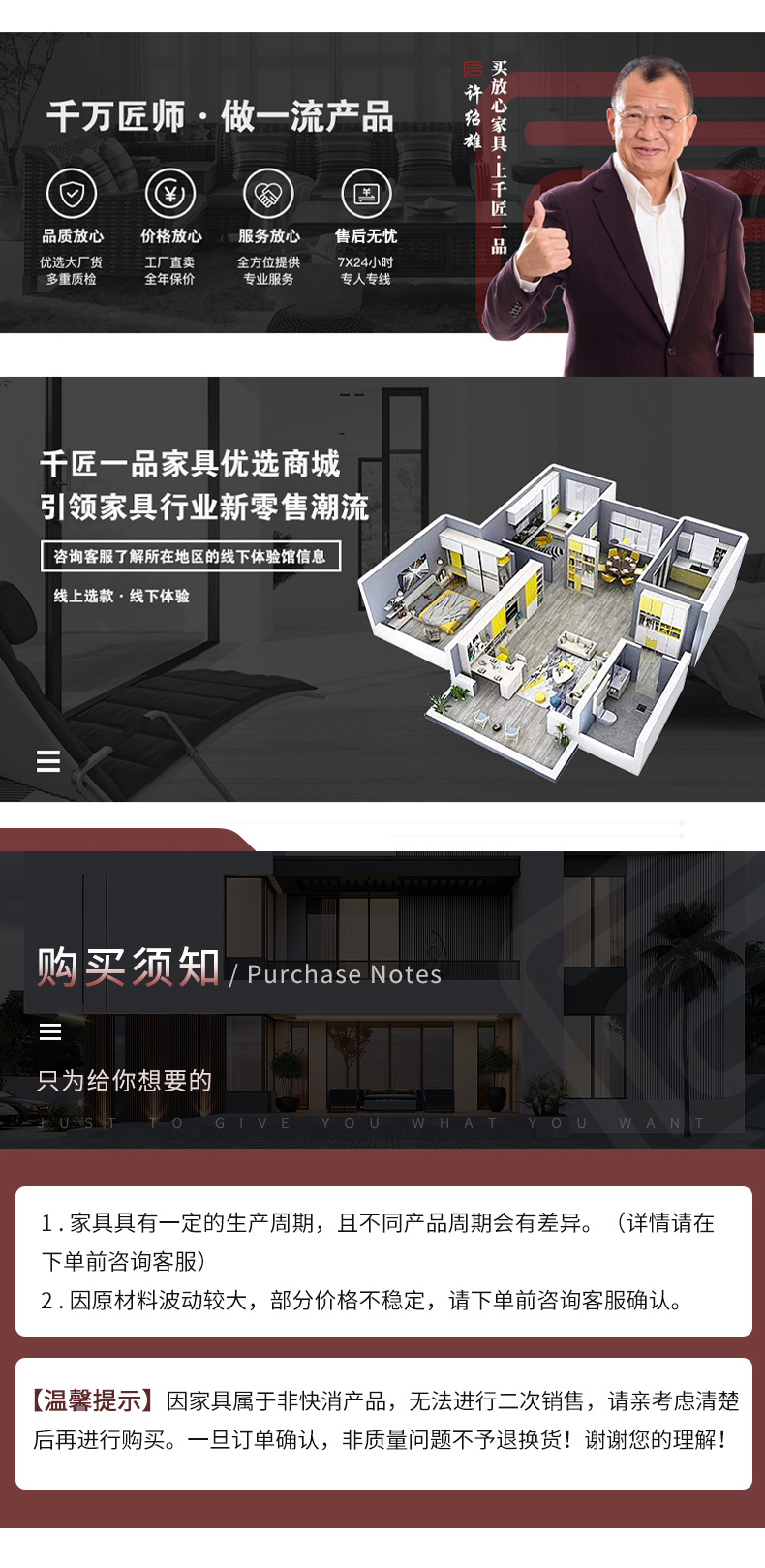 千匠一品将您购买的商品配送到家并安装,需注意该服务仅限电梯入户,若为步梯搬楼请事先与客服沟通。