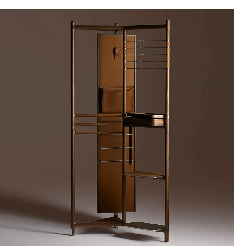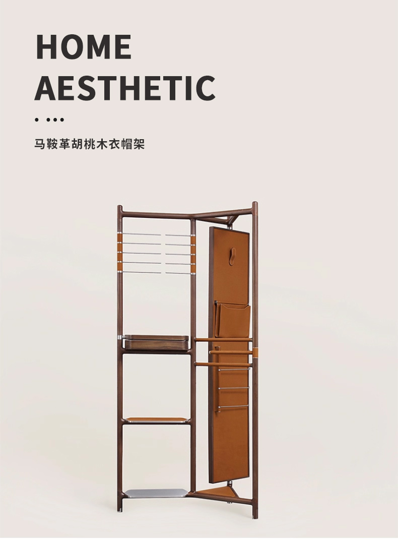 千匠一品 意式风格 胡桃木+牛皮+金属 时尚大气衣帽架DMN-108-J