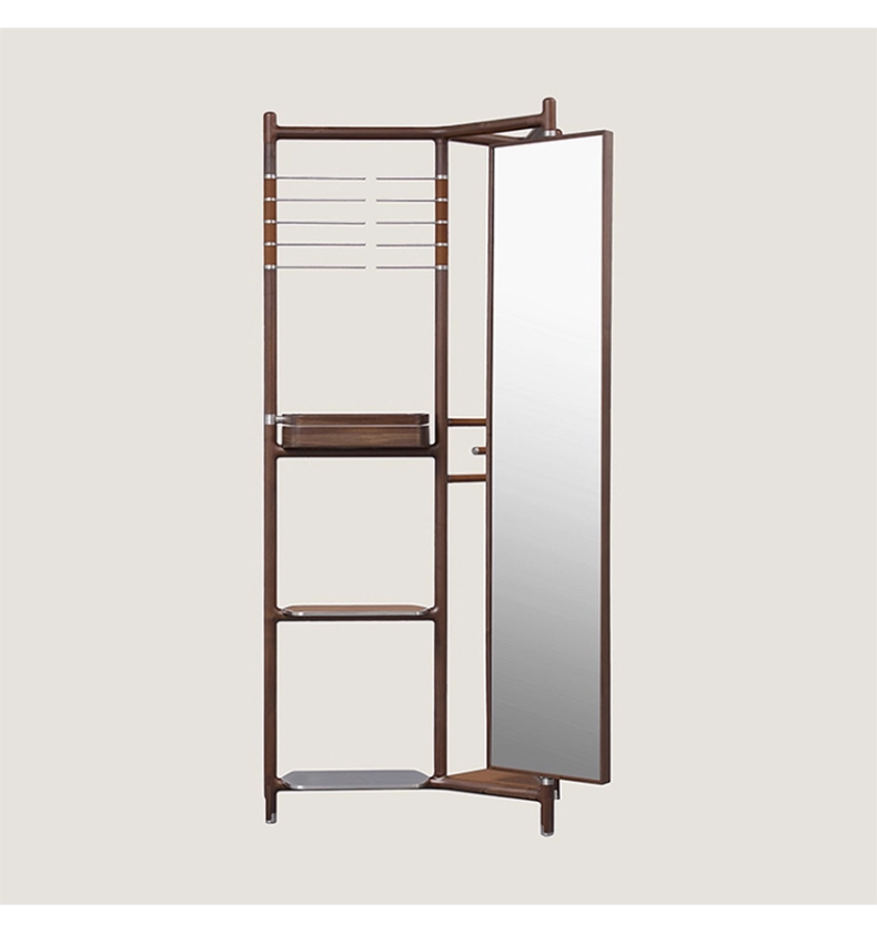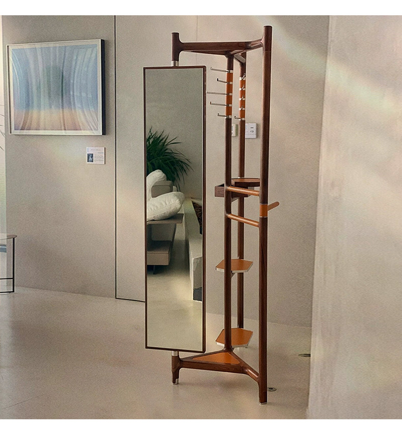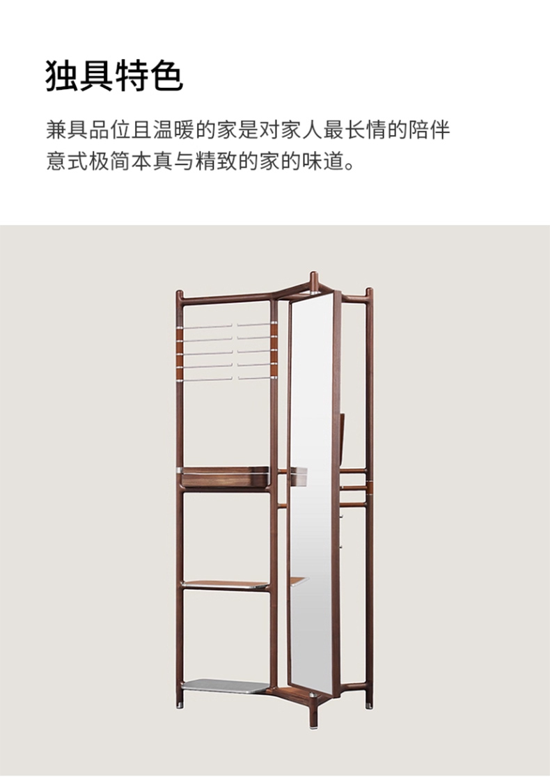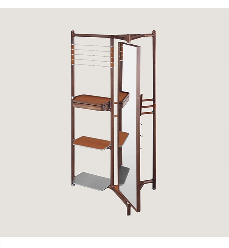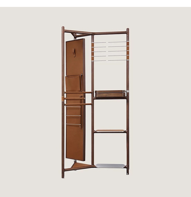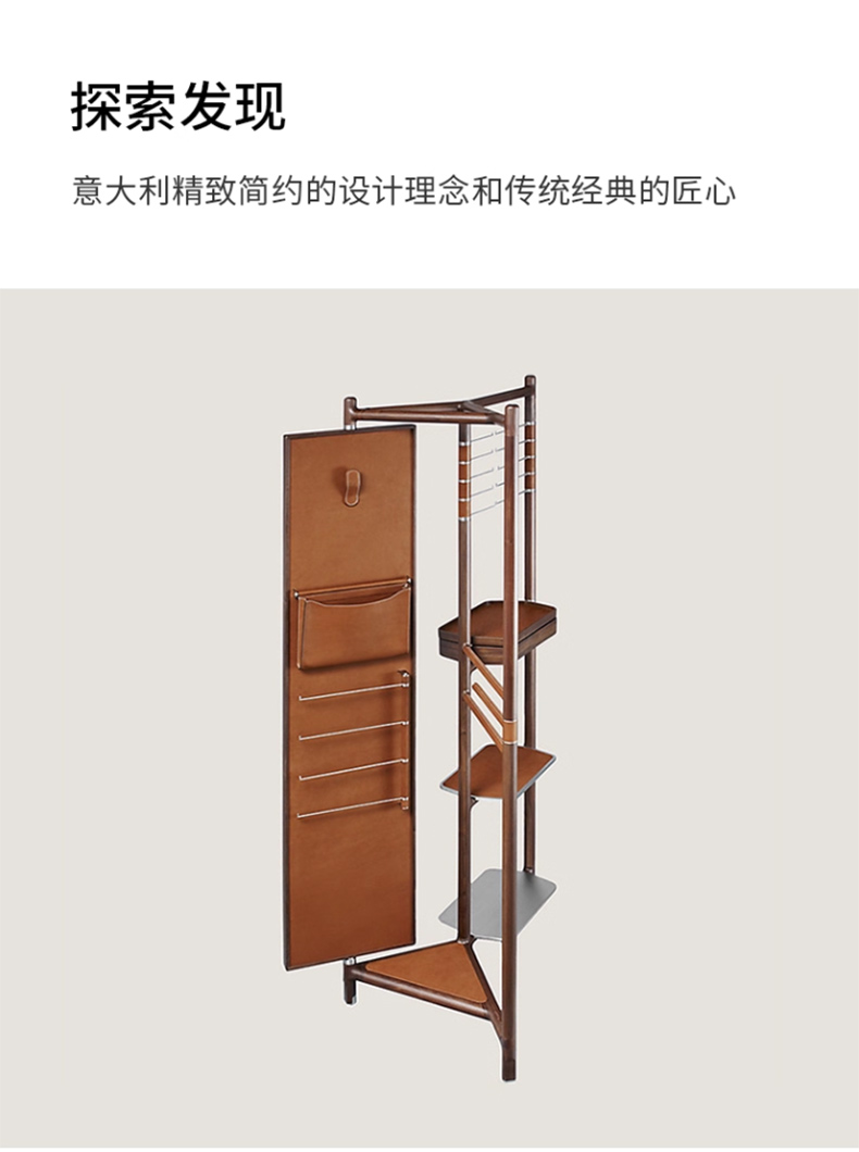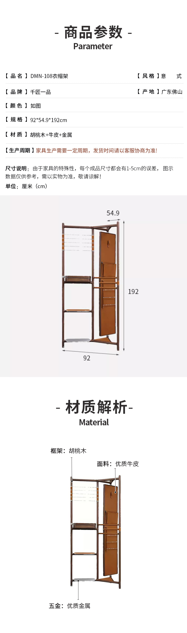 商品名称:千匠一品 意式风格 胡桃木+牛皮+金属 时尚大气衣帽架DMN-108-J