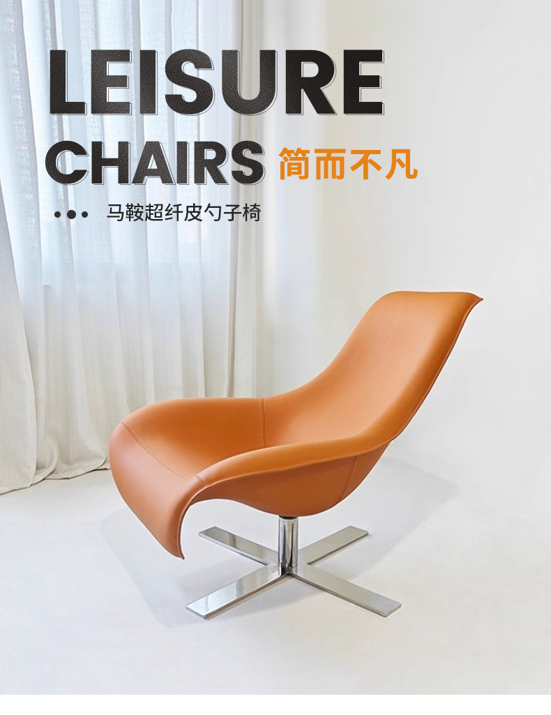 千匠一品 意式风格 马鞍超纤皮+定型棉+不锈钢底座 时尚大气勺子椅YZ-036-J