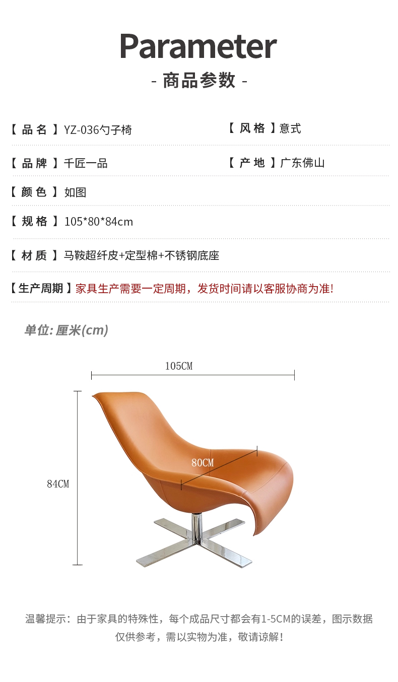 商品名称:千匠一品 意式风格 马鞍超纤皮+定型棉+不锈钢底座 时尚大气勺子椅YZ-036-J