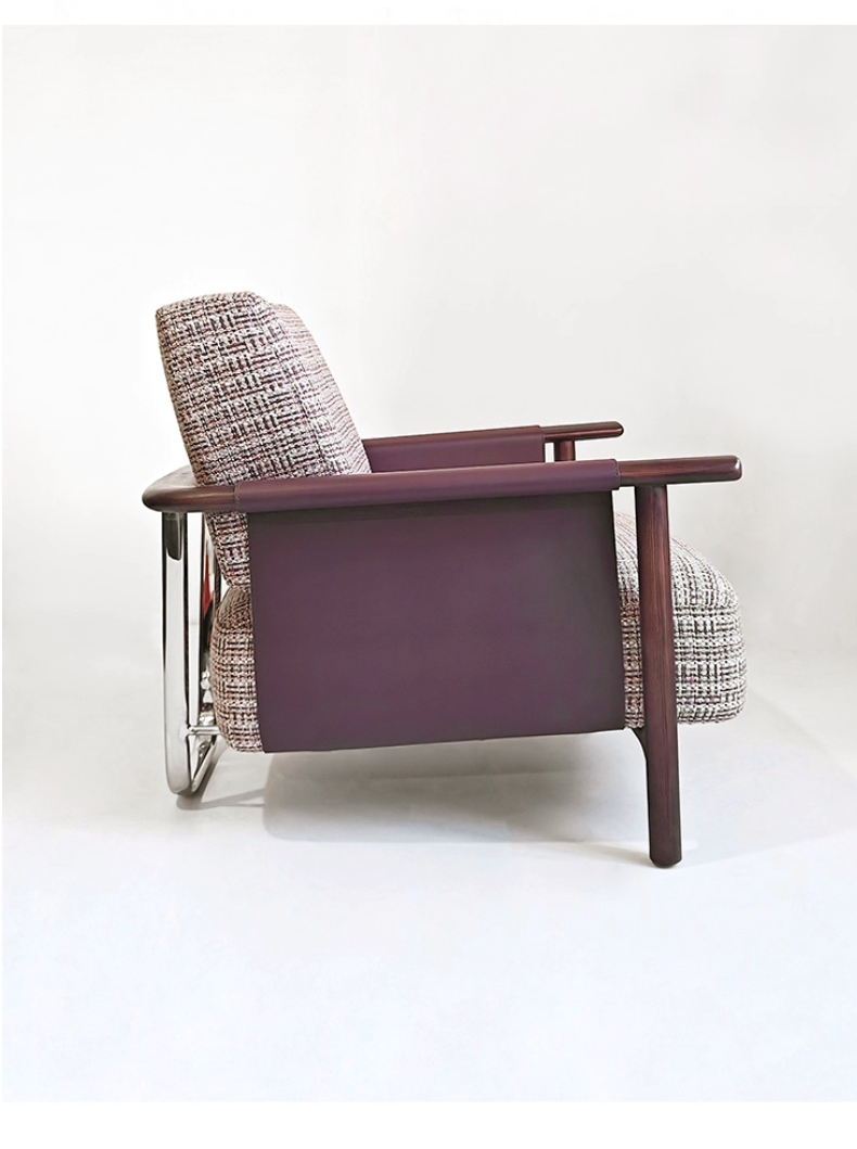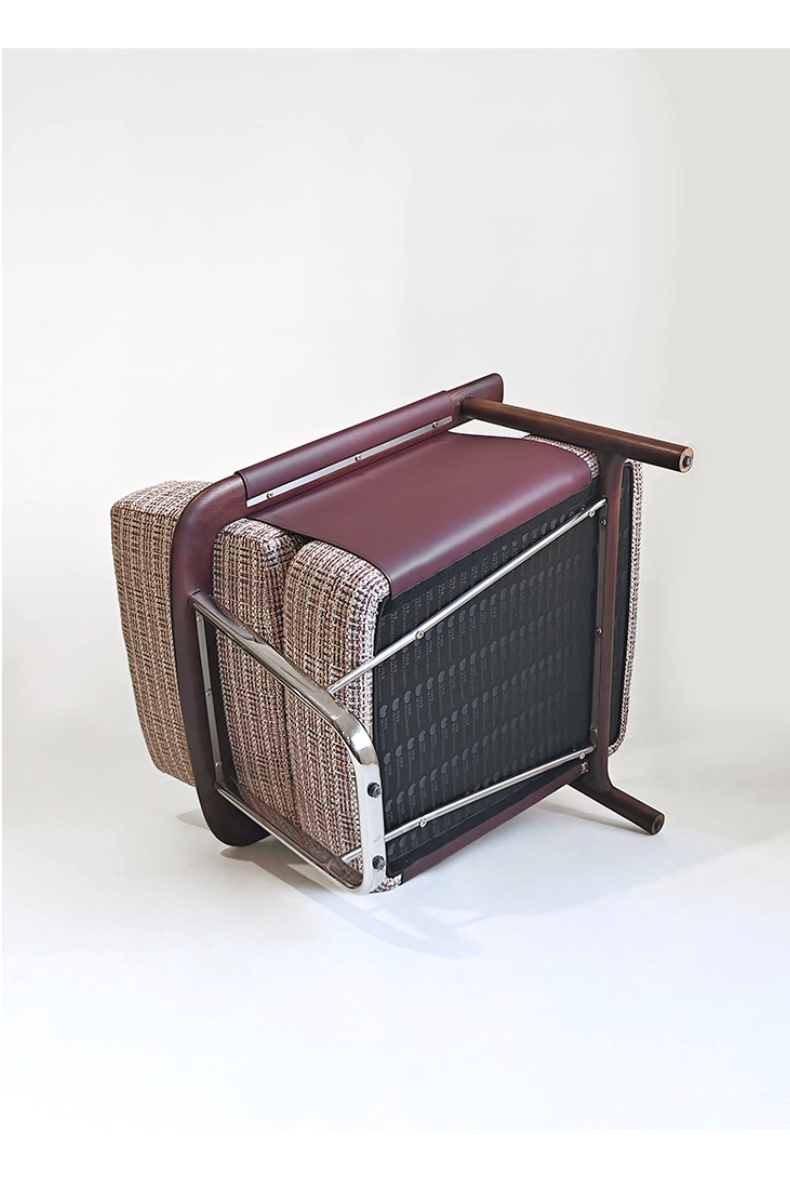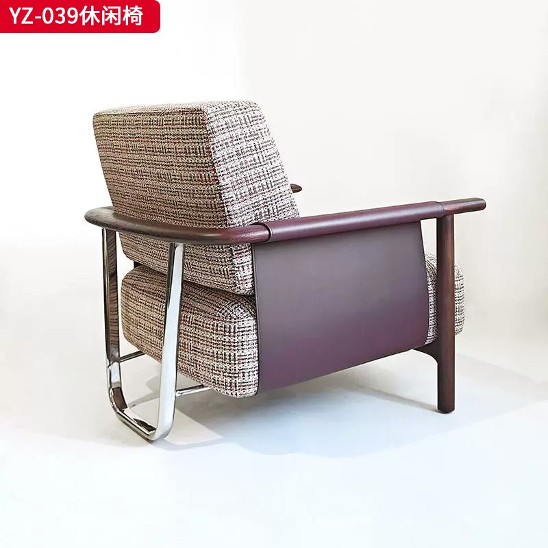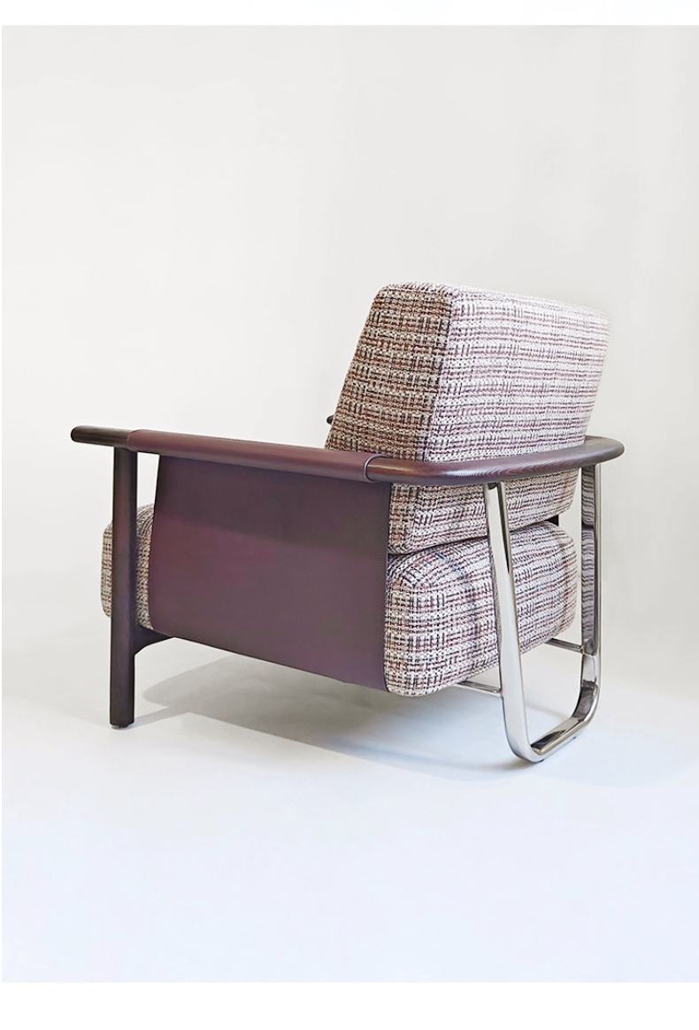 商品名称:千匠一品 意式风格 马鞍革+麻布+高密度海绵+白蜡木不锈钢框架 时尚大气休闲椅YZ-039-J