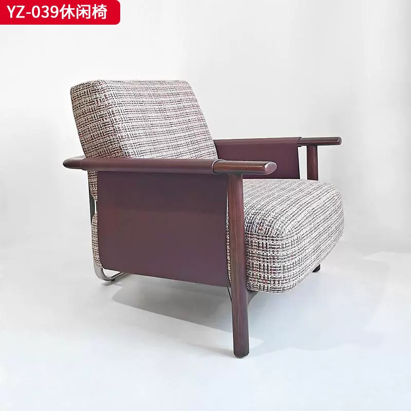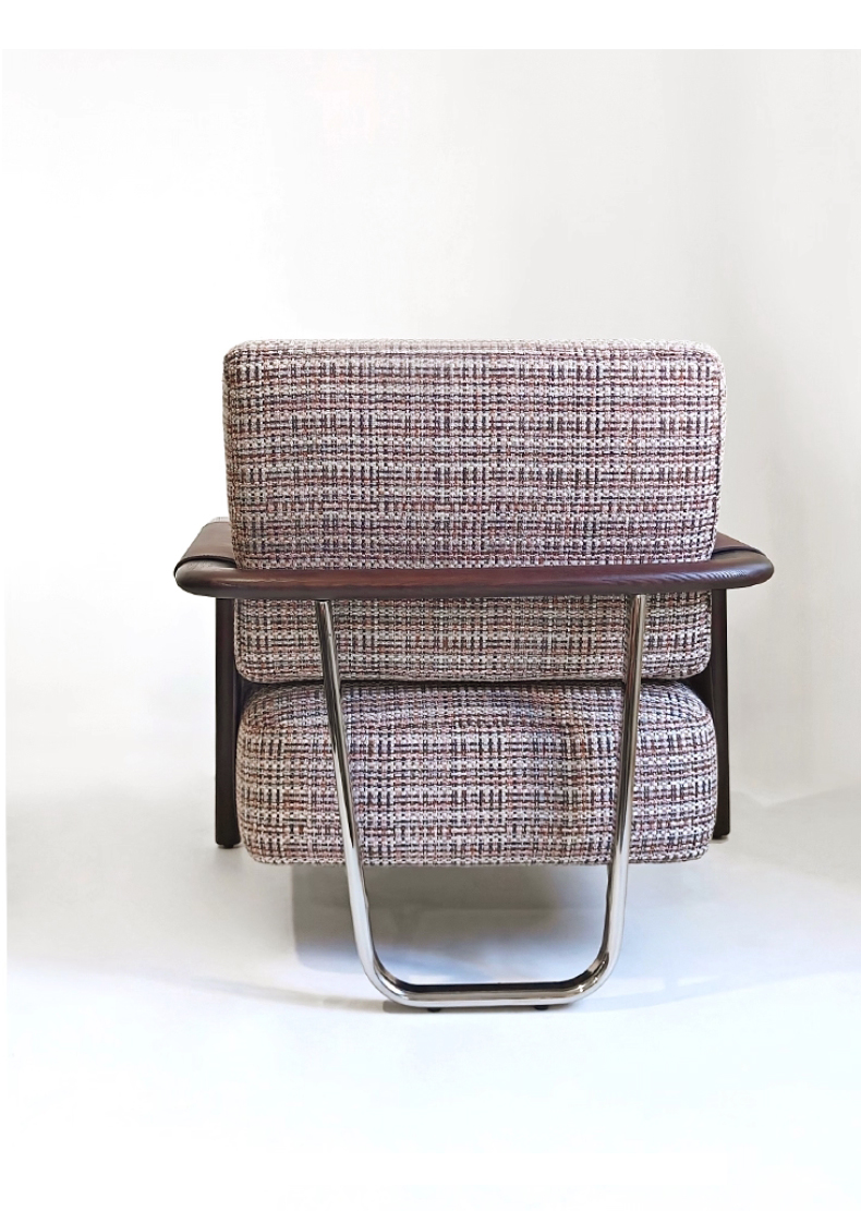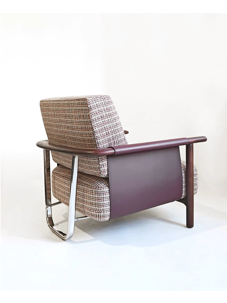 千匠一品 意式风格 马鞍革+麻布+高密度海绵+白蜡木不锈钢框架 时尚大气休闲椅YZ-039-J