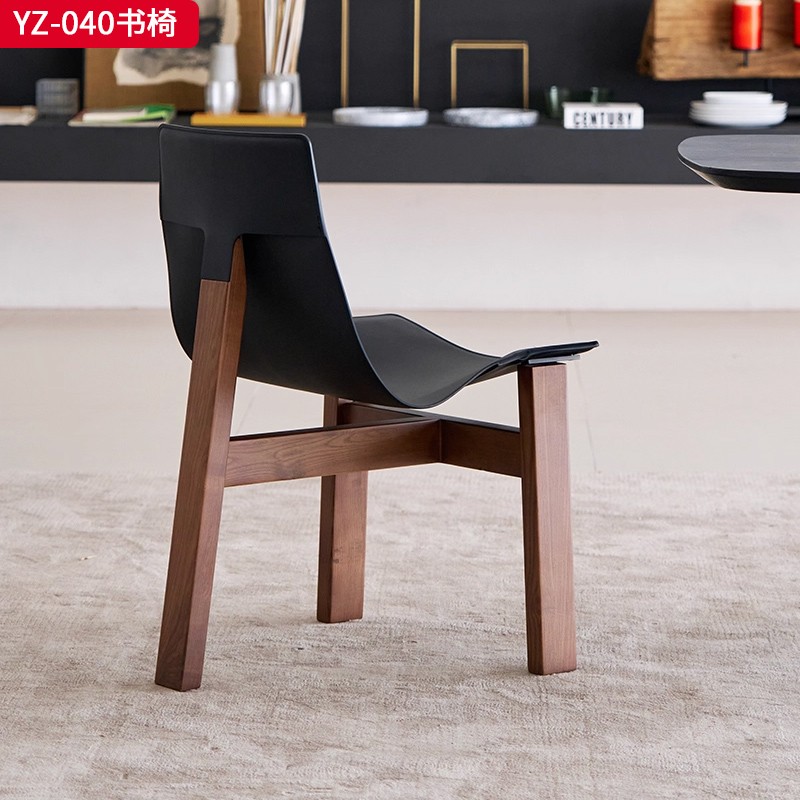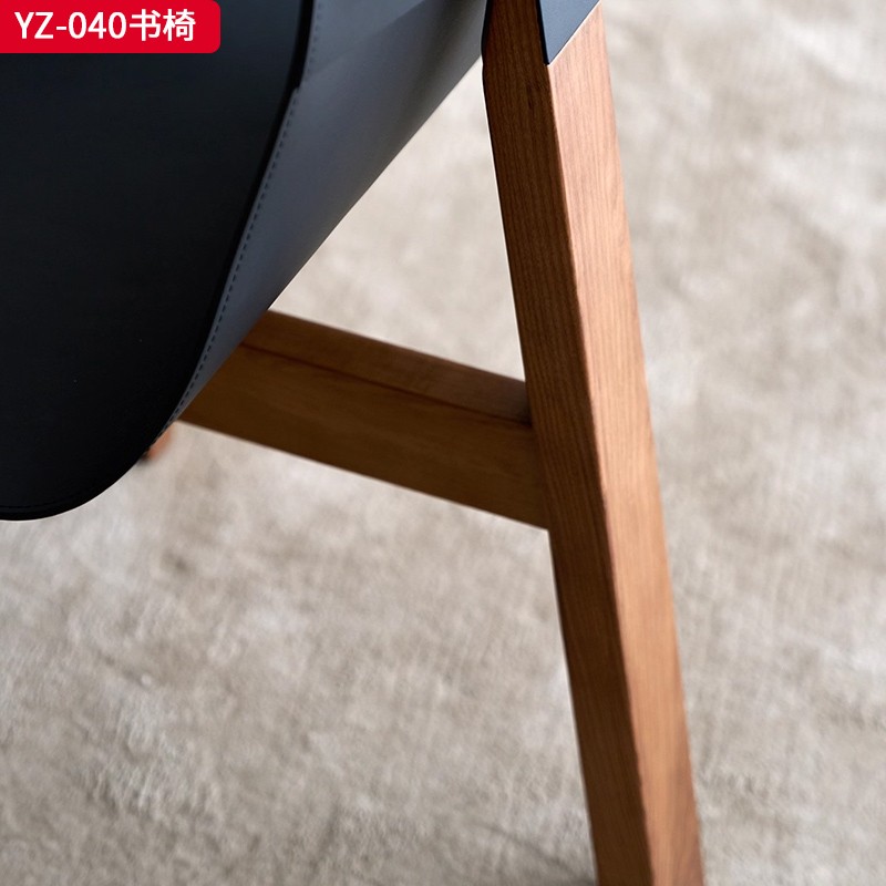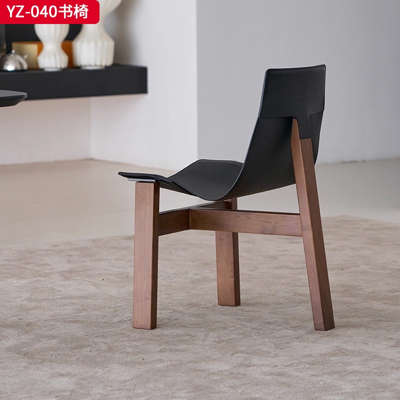 千匠一品 中古侘寂风格 白蜡木+马鞍或超纤皮 时尚大气书椅YZ-040-J