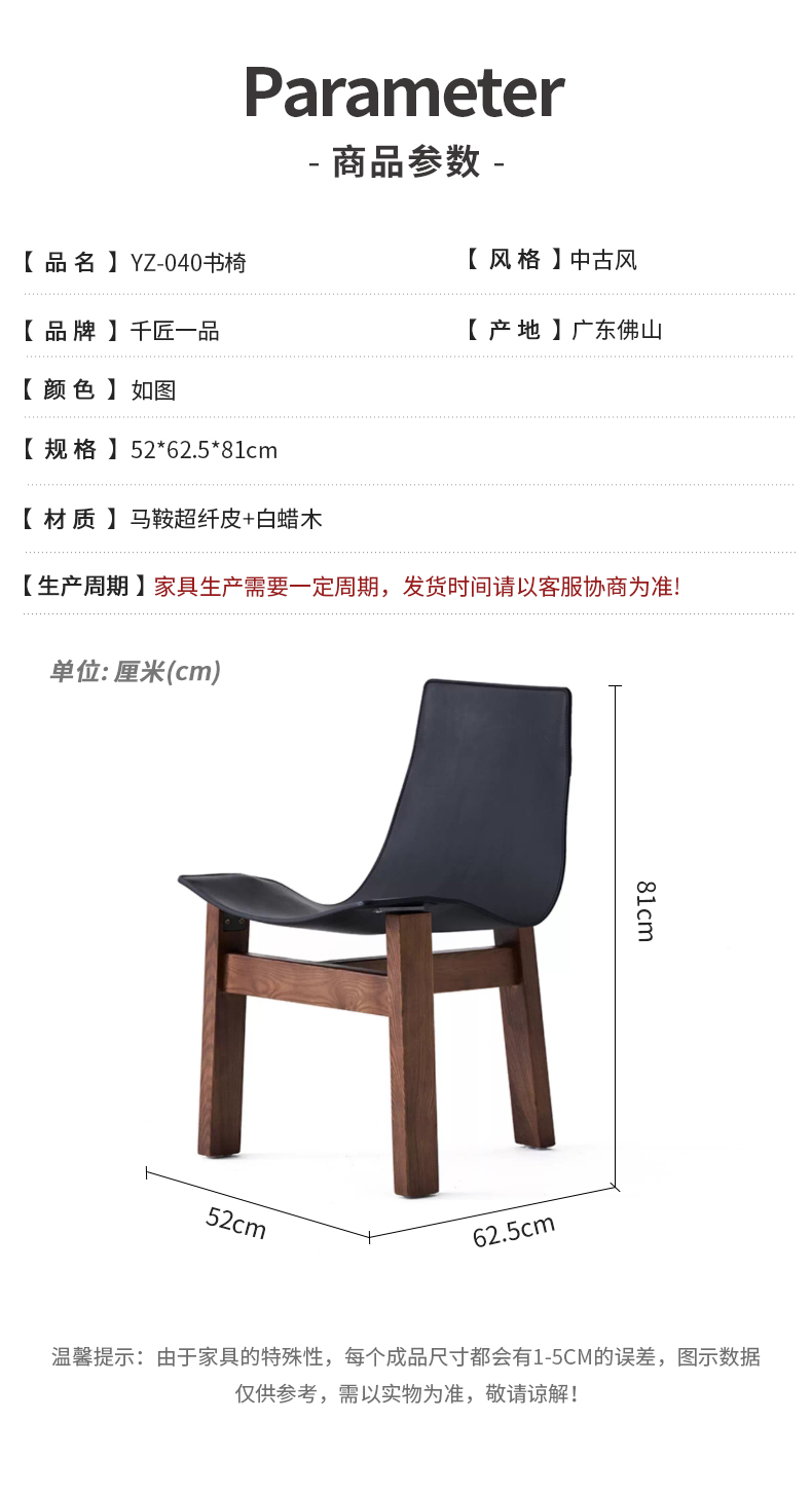 商品名称:千匠一品 中古侘寂风格 白蜡木+马鞍或超纤皮 时尚大气书椅YZ-040-J