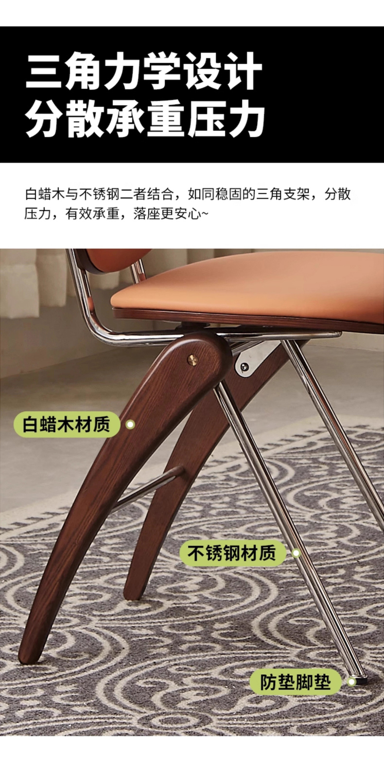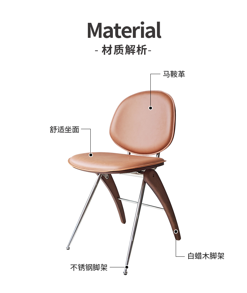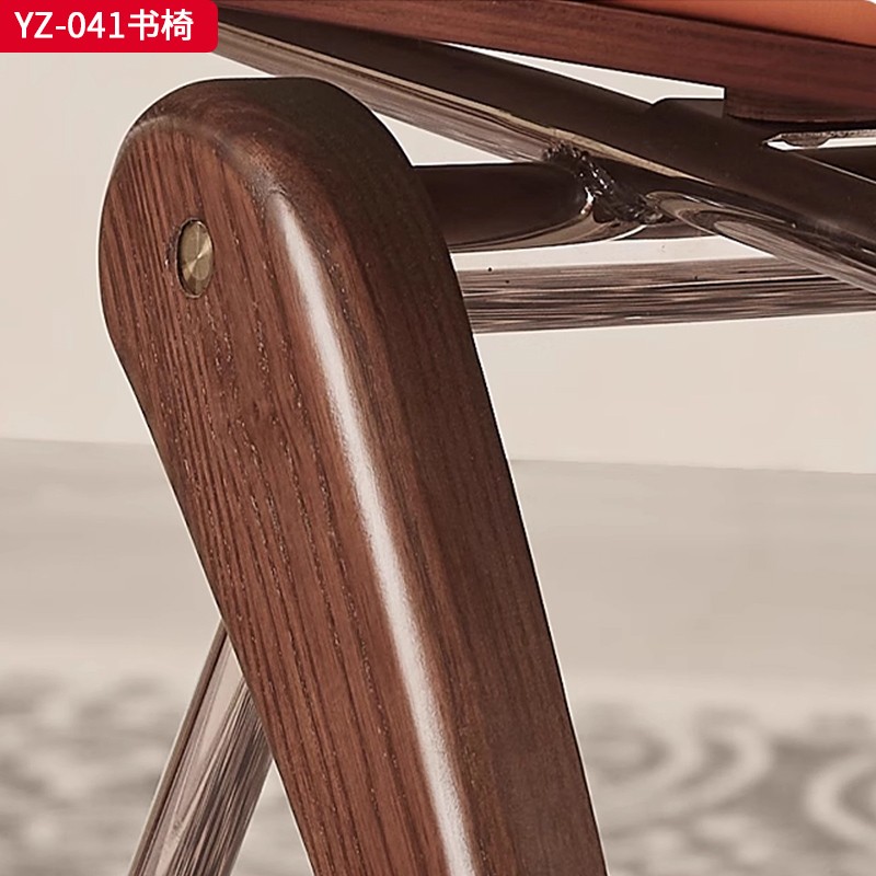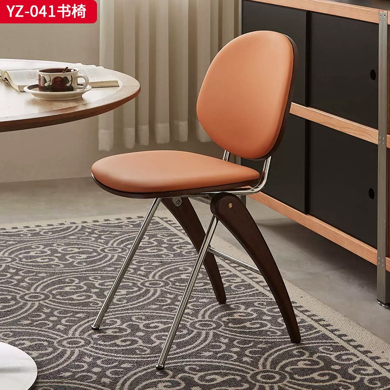 千匠一品 中古侘寂风格 马鞍革+白蜡木+不锈钢 时尚大气书椅YZ-041-J