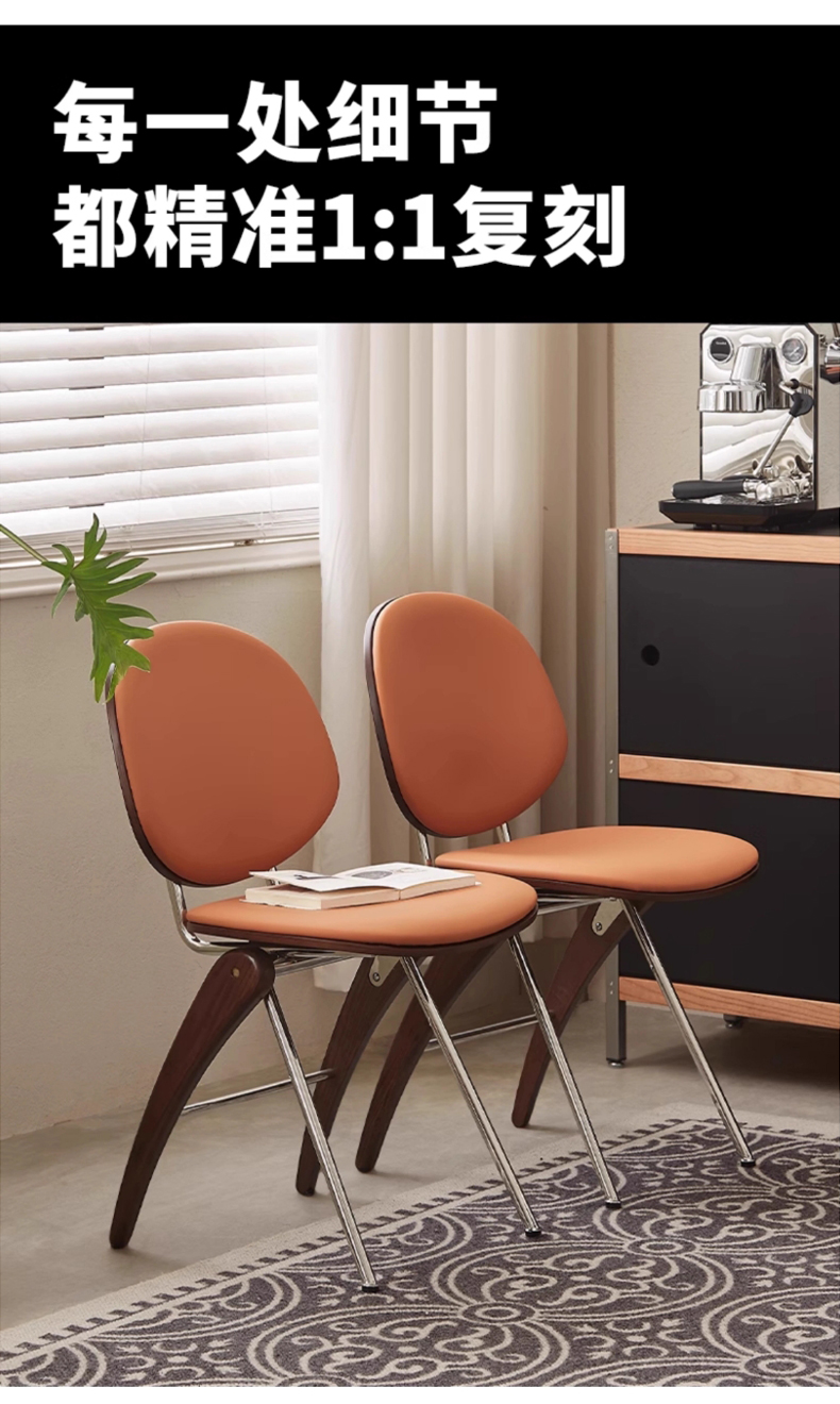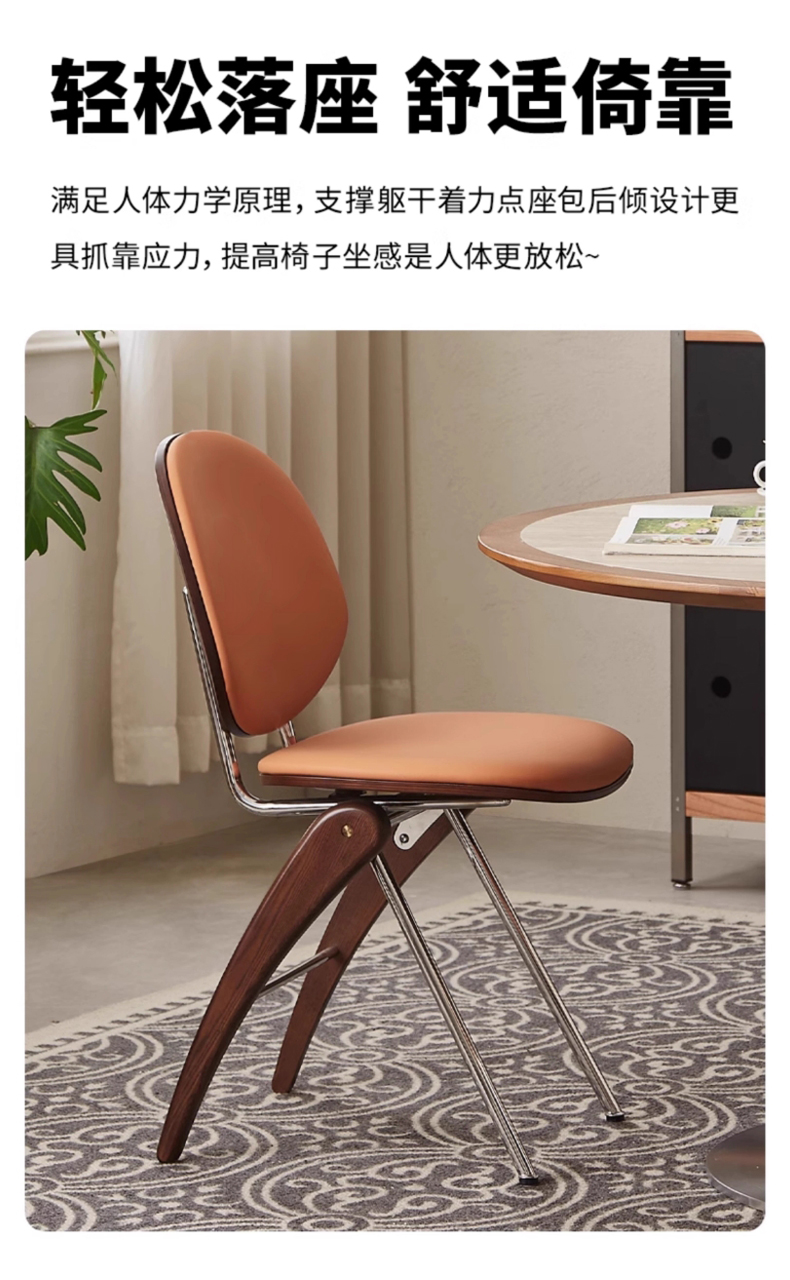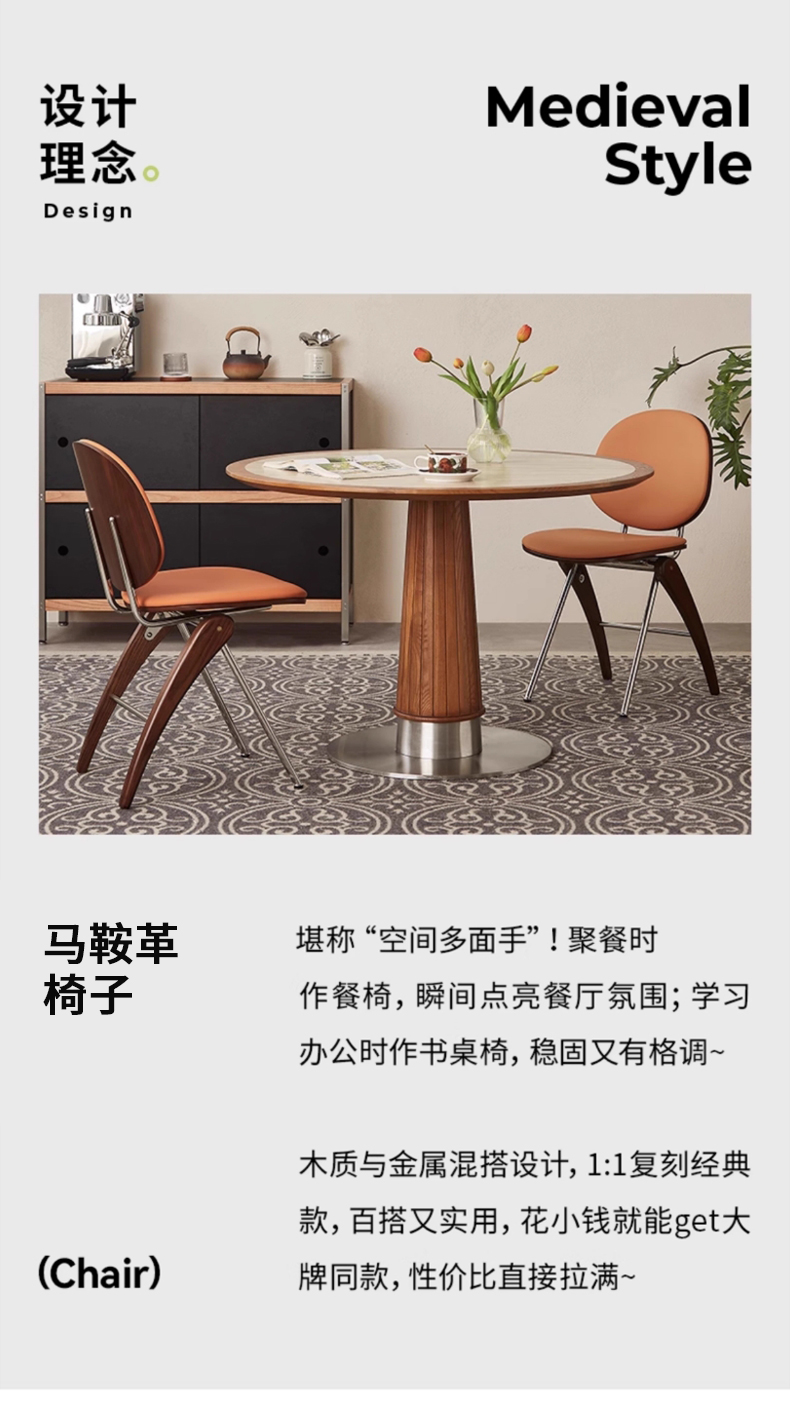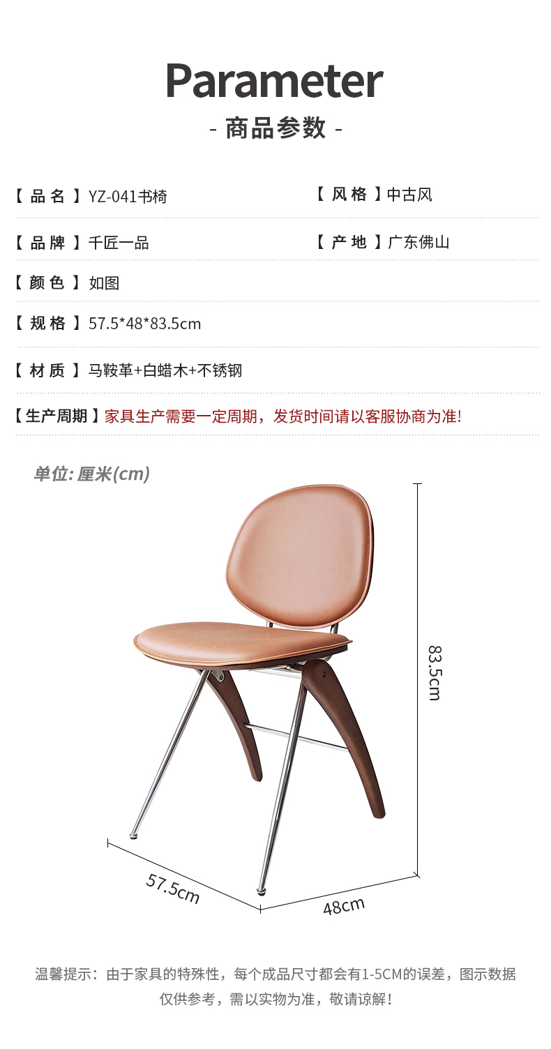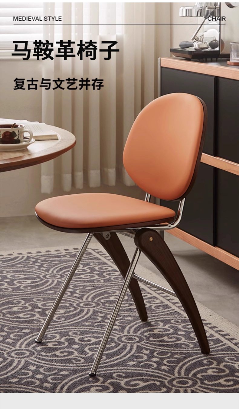 商品名称:千匠一品 中古侘寂风格 马鞍革+白蜡木+不锈钢 时尚大气书椅YZ-041-J