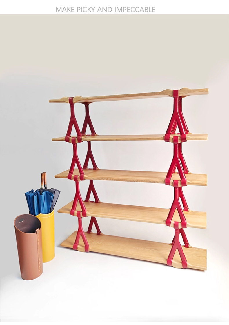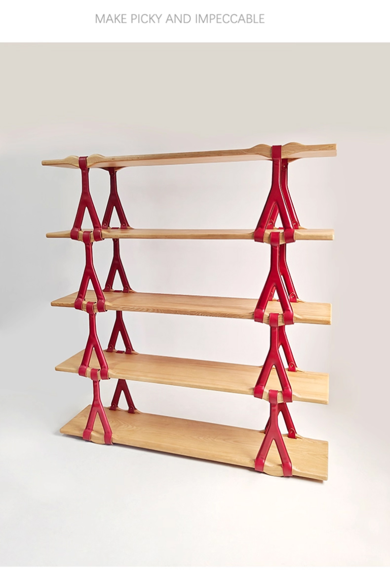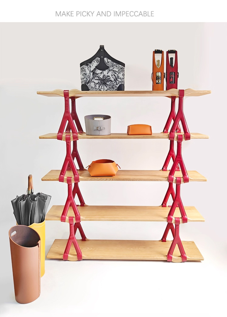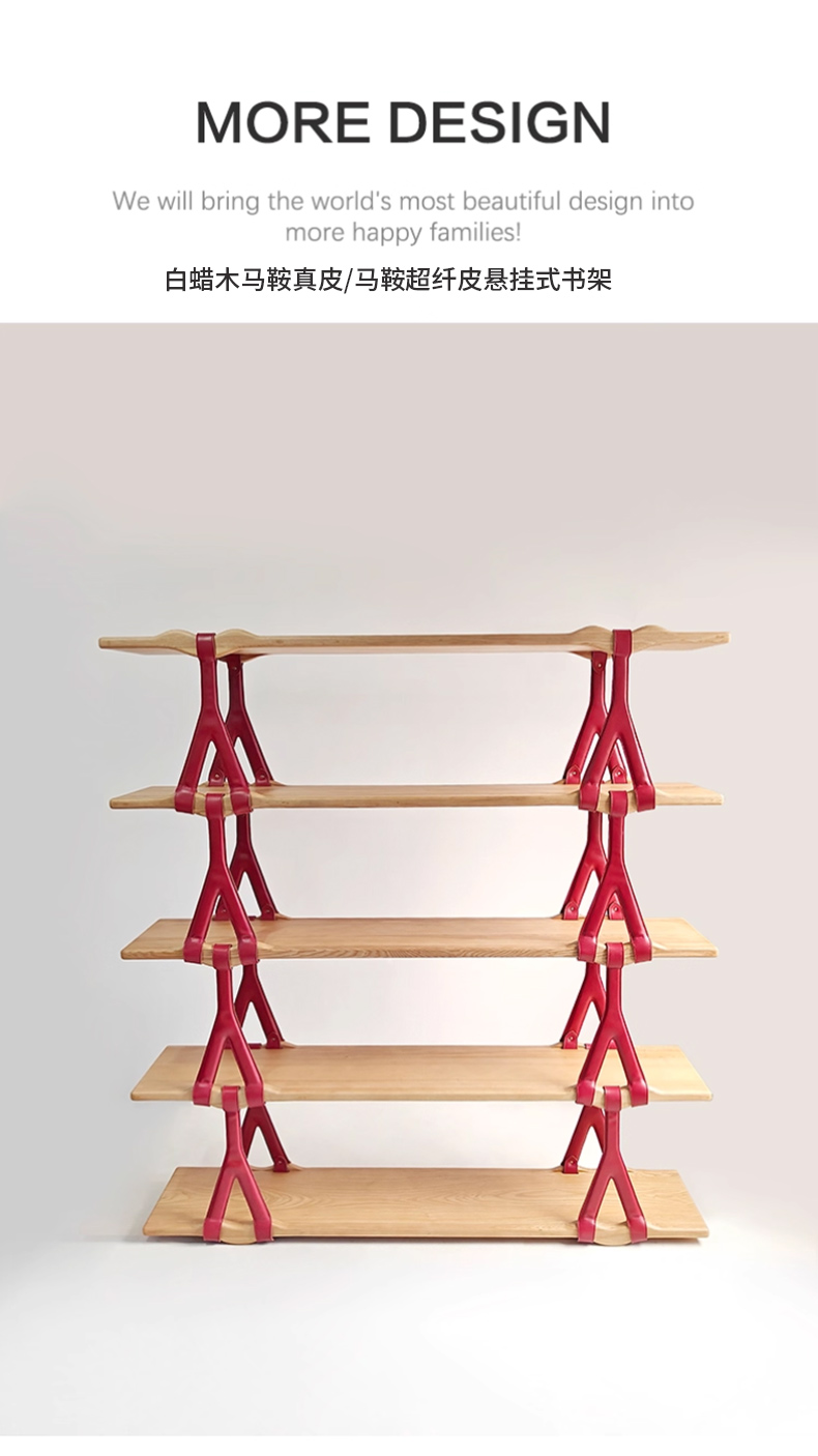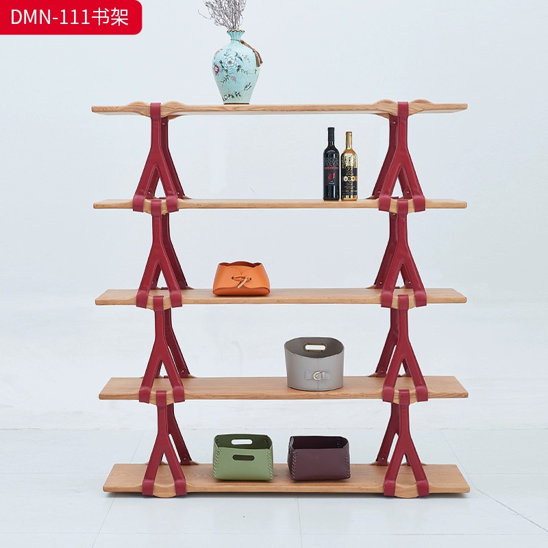 千匠一品 意式风格 白蜡木+马鞍超迁或真皮 时尚大气书架DMN-111-J