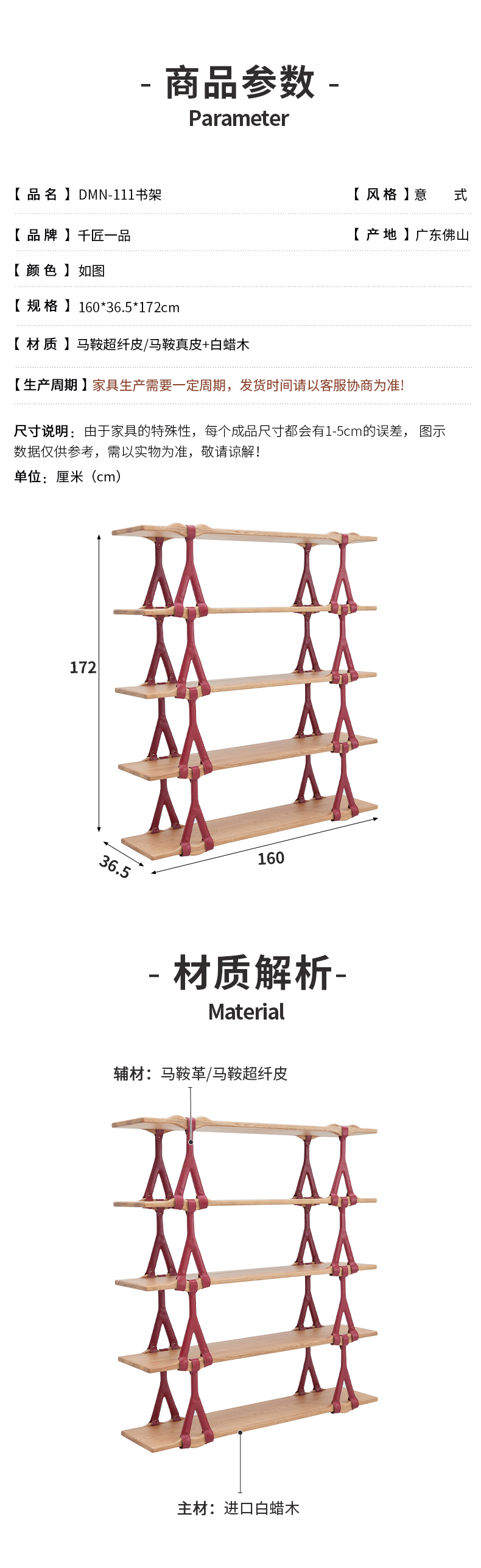 商品名称:千匠一品 意式风格 白蜡木+马鞍超迁或真皮 时尚大气书架DMN-111-J