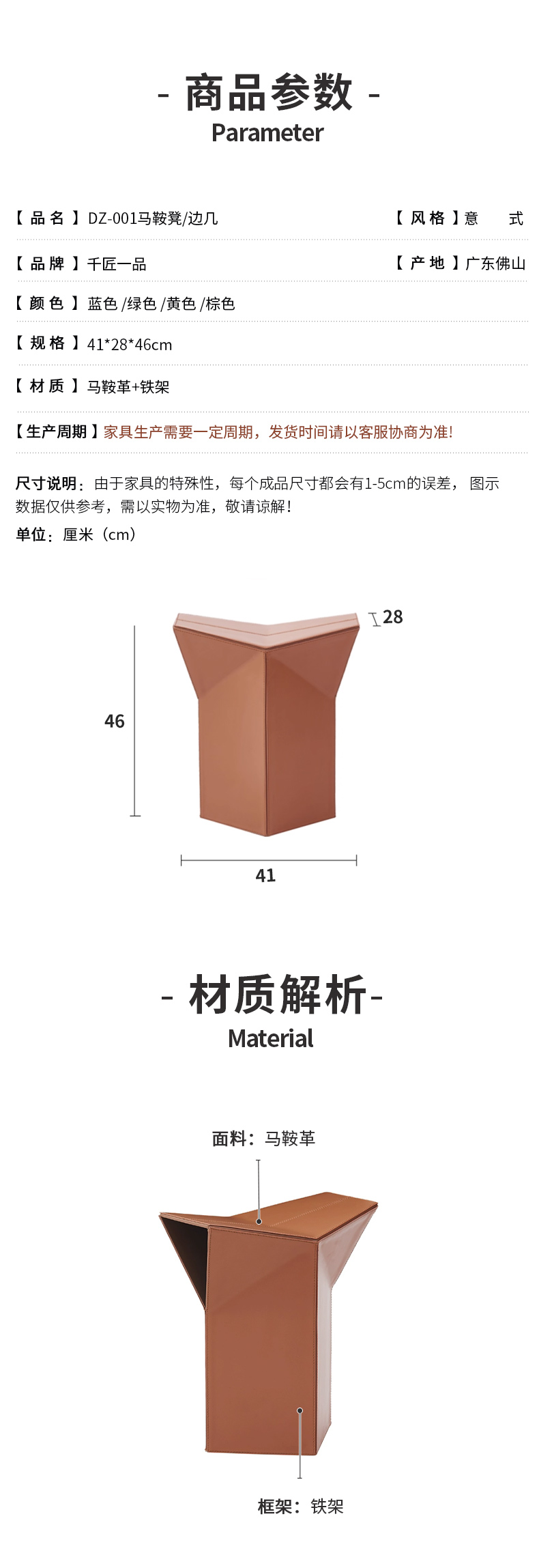 千匠一品 意式风格 铁架+马鞍革 时尚大气边几 凳DZ-001-J
