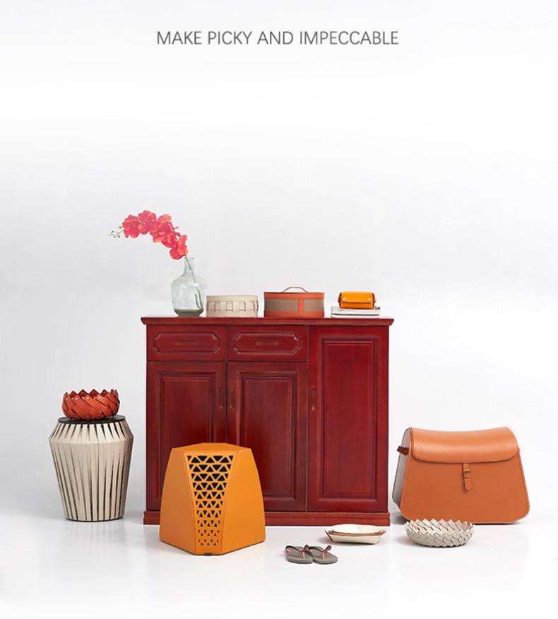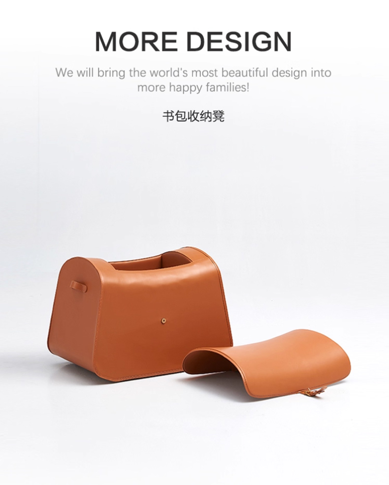 千匠一品 意式风格 木架+马鞍革 时尚大气书包收纳凳DZ-004-J