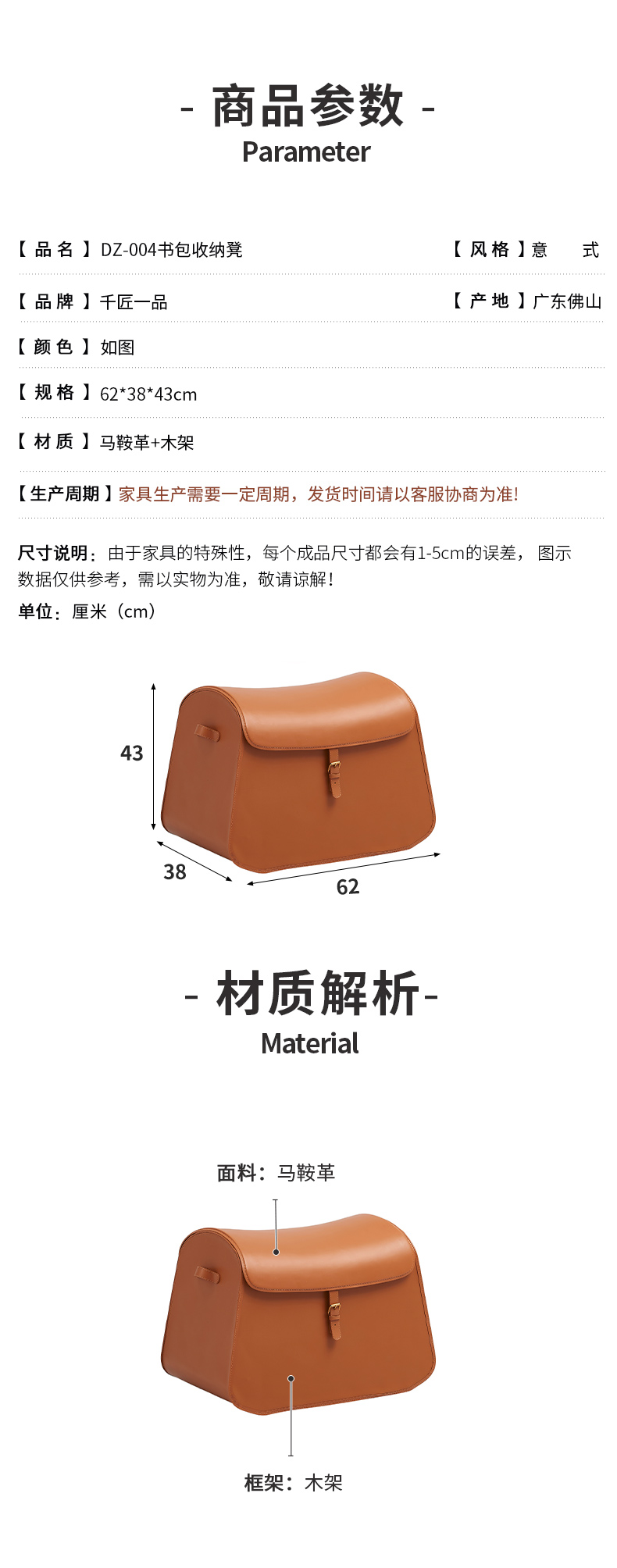 商品名称:千匠一品 意式风格 木架+马鞍革 时尚大气书包收纳凳DZ-004-J