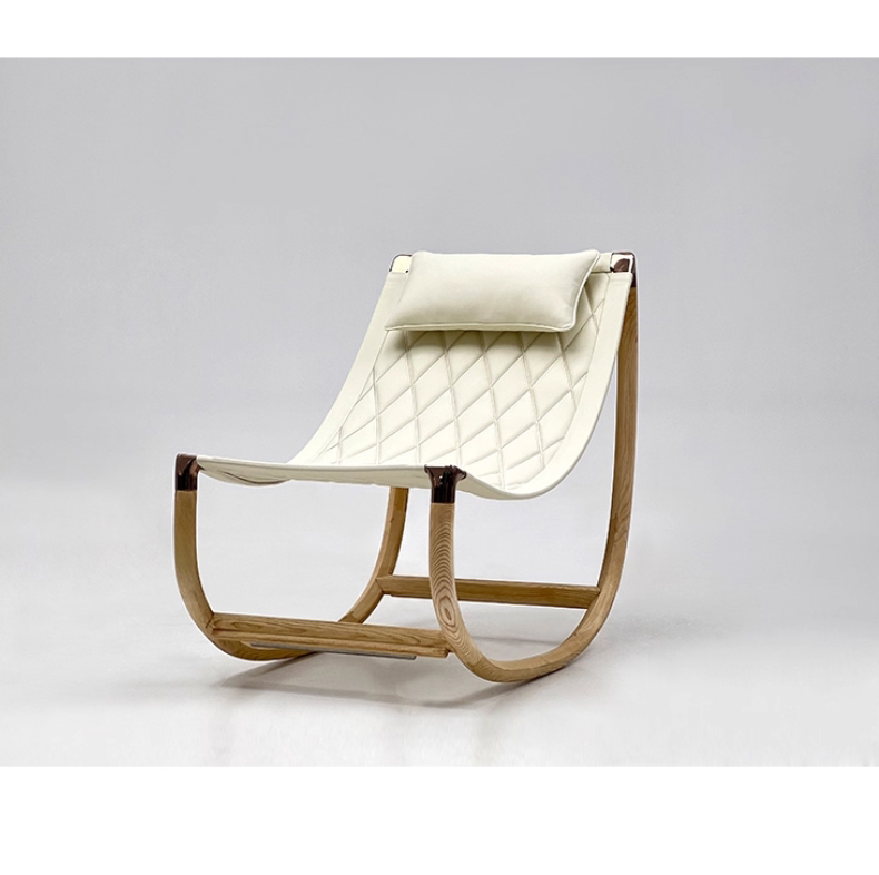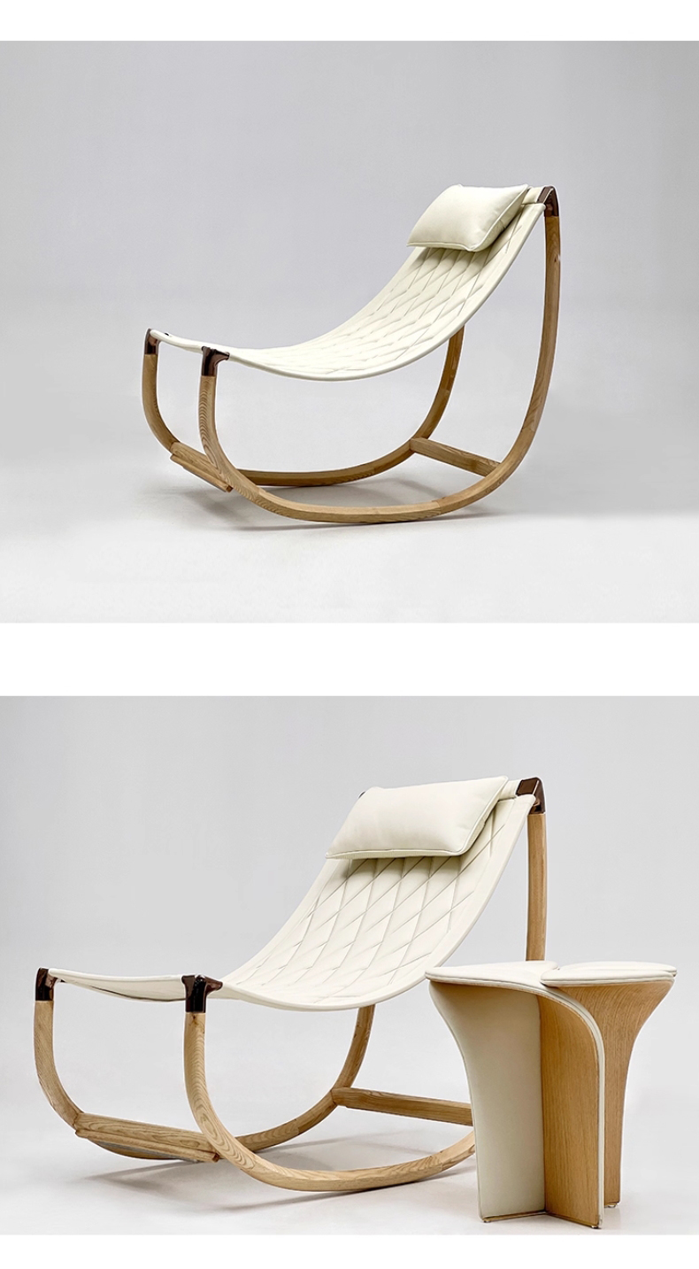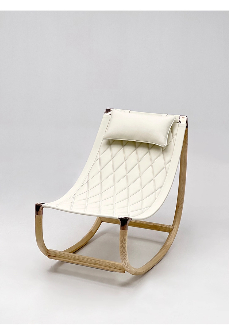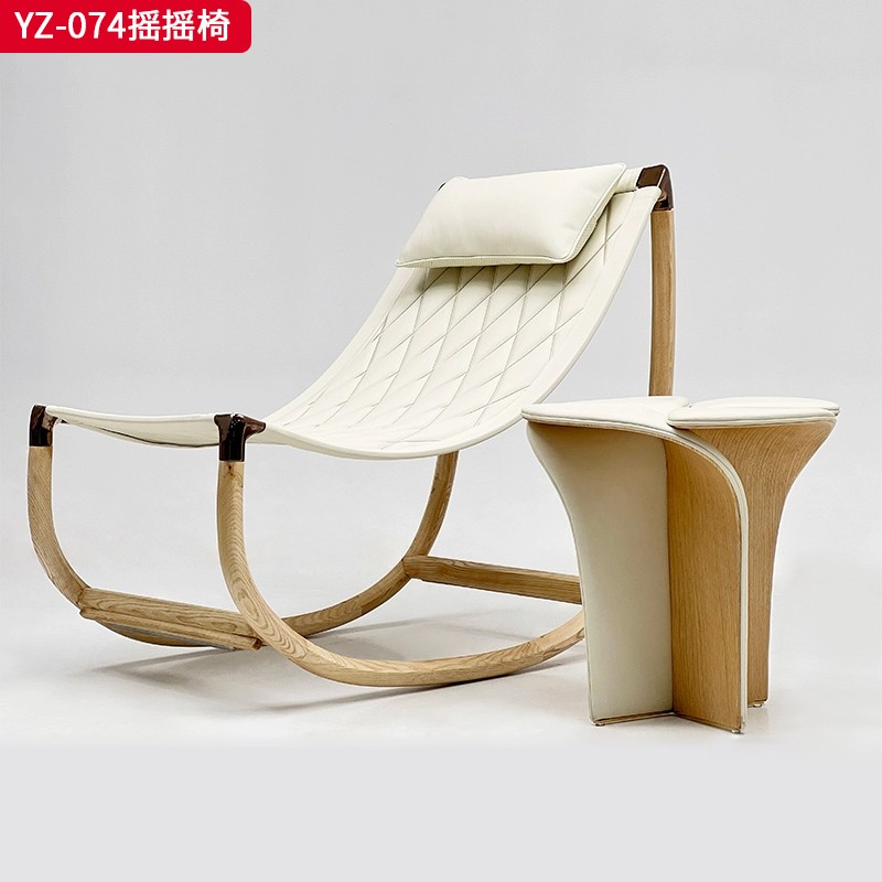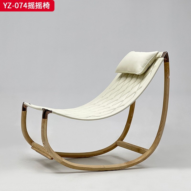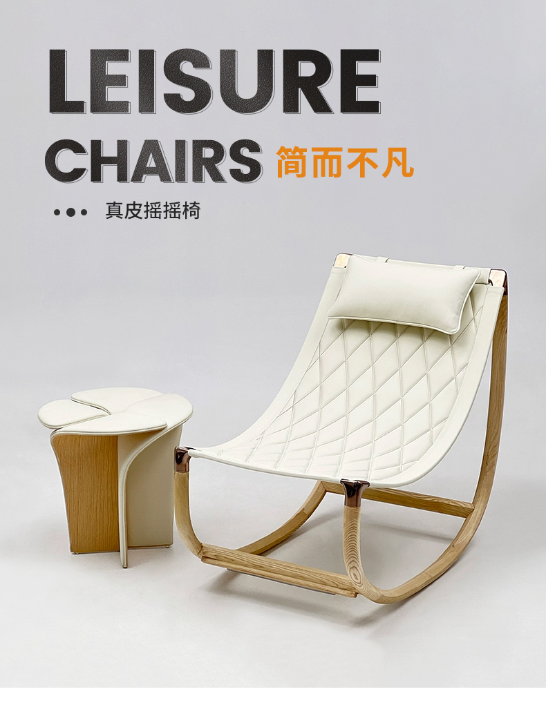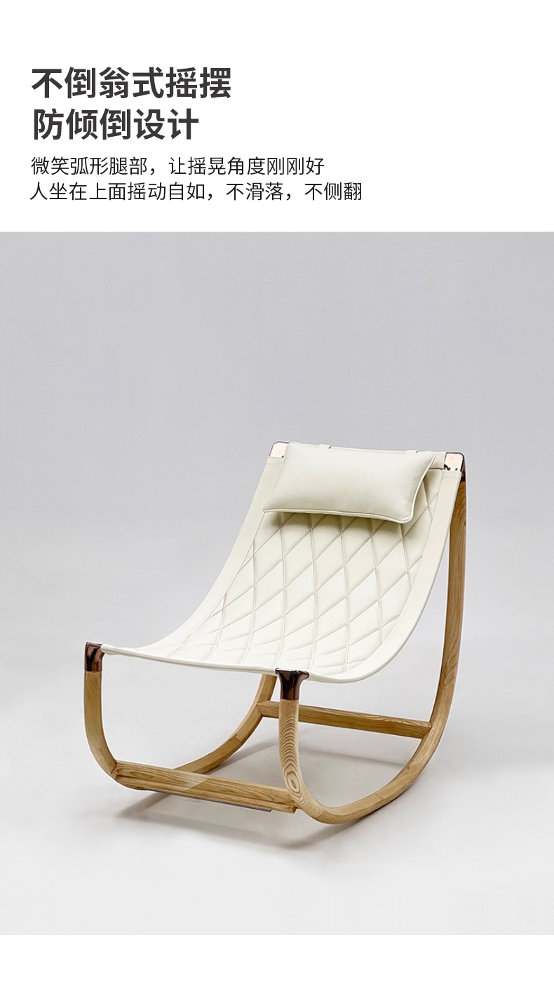 千匠一品 意式风格 白橡木+真皮 时尚大气摇摇椅YZ-074-J