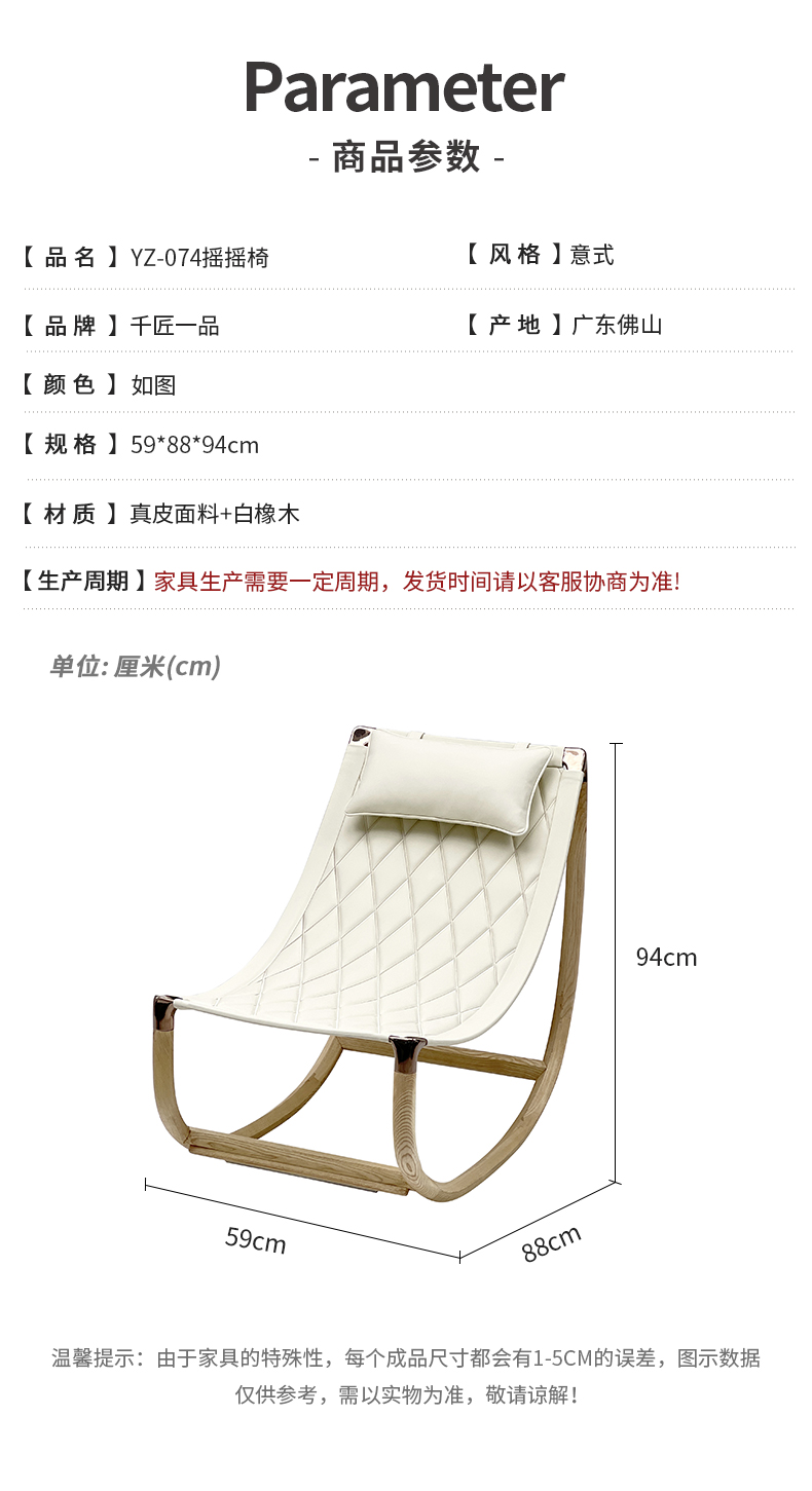 商品名称:千匠一品 意式风格 白橡木+真皮 时尚大气摇摇椅YZ-074-J
