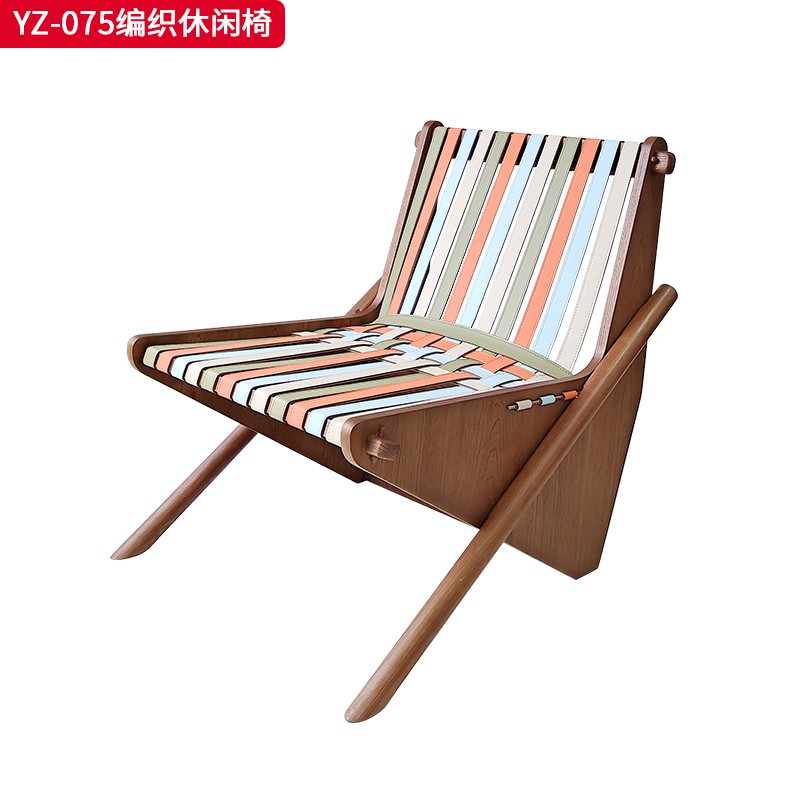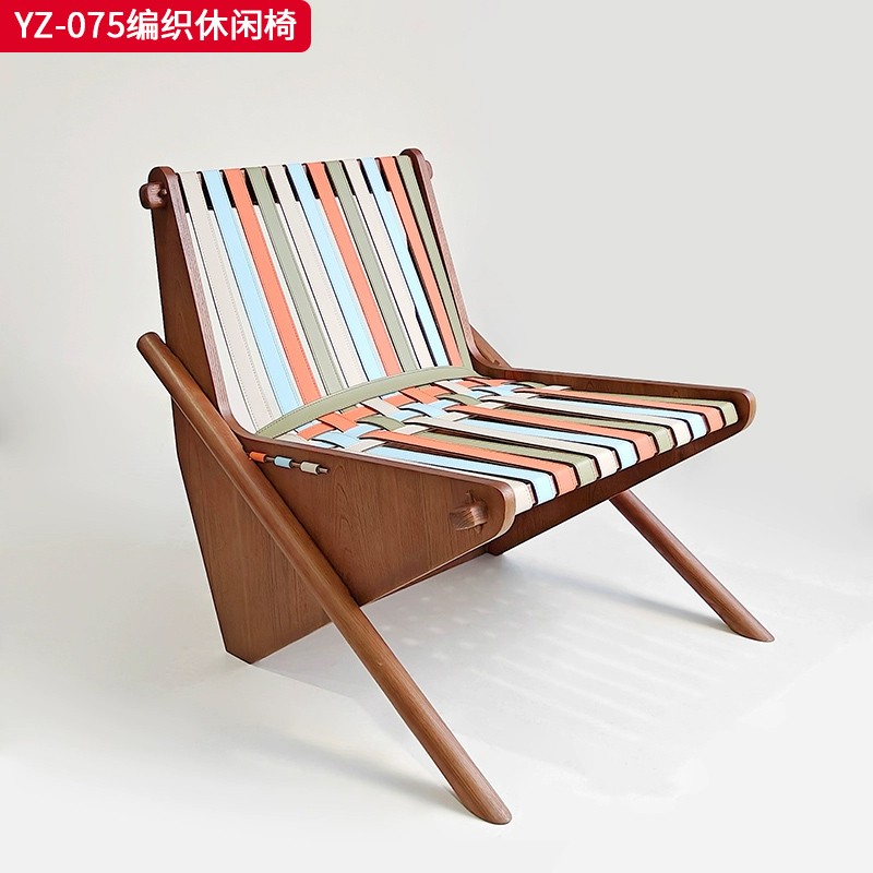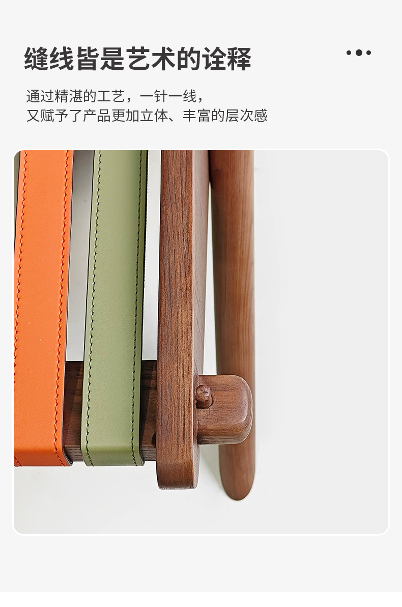 千匠一品 意式风格 白蜡木+马鞍革 马鞍超迁皮 时尚大气休闲椅YZ-075-J