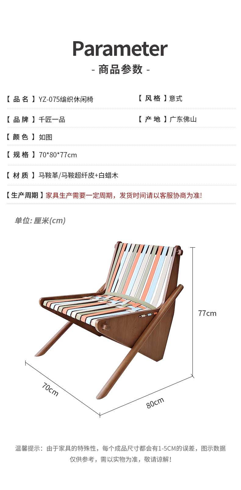 商品名称:千匠一品 意式风格 白蜡木+马鞍革 马鞍超迁皮 时尚大气休闲椅YZ-075-J