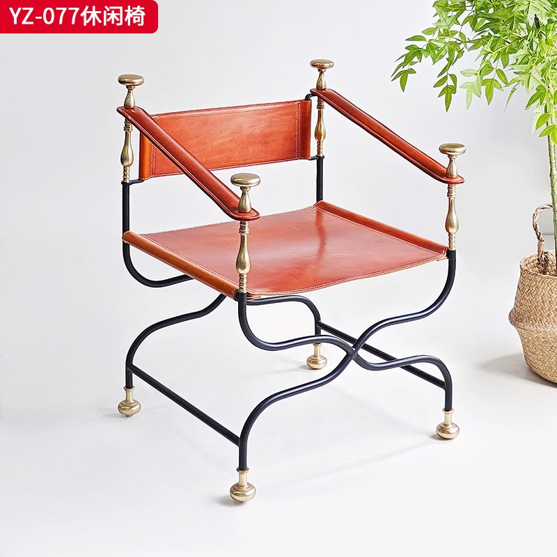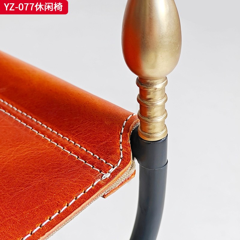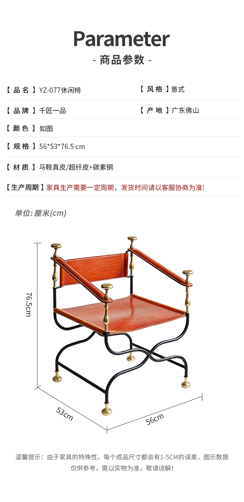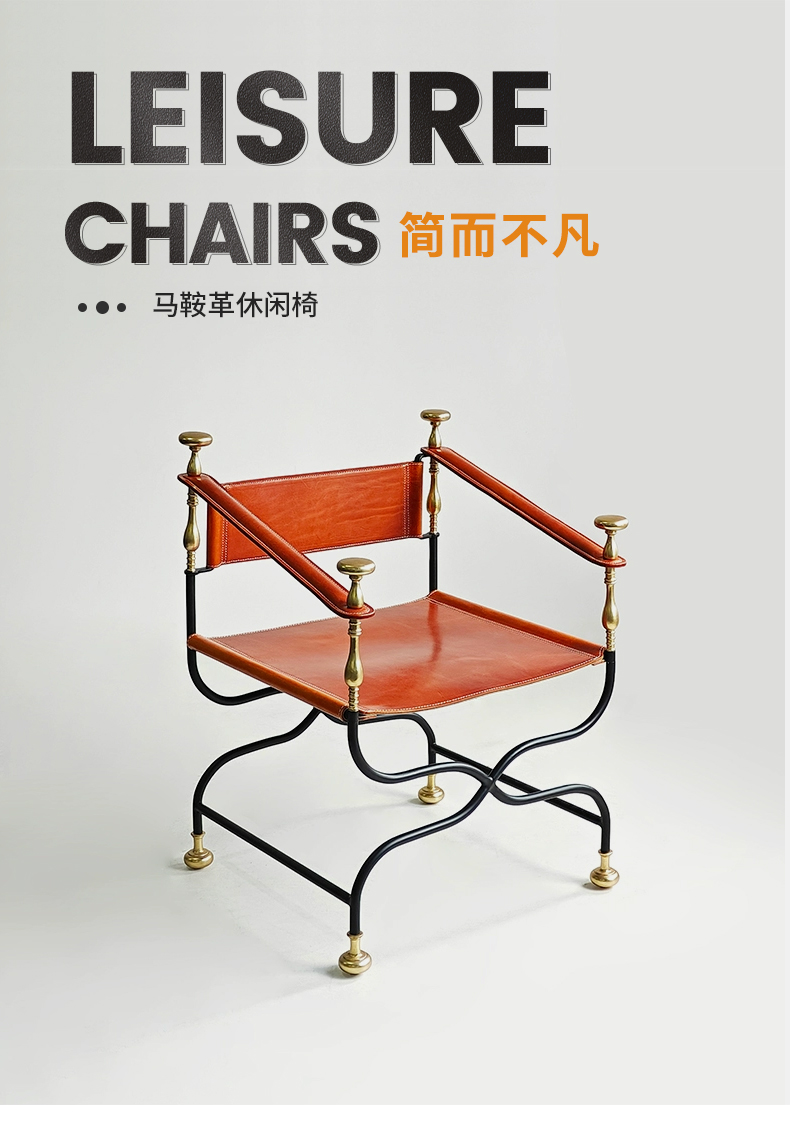 千匠一品 意式风格 碳素钢+马鞍真皮 马鞍革 时尚大气休闲椅YZ-077-J