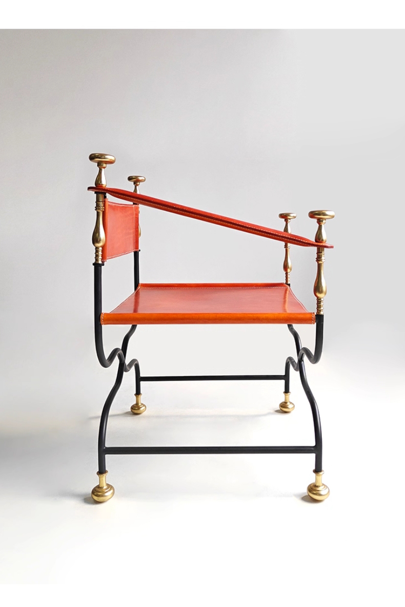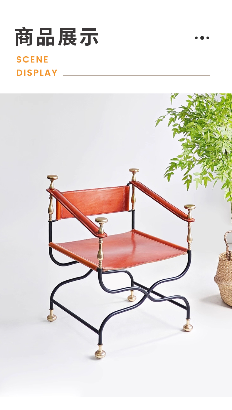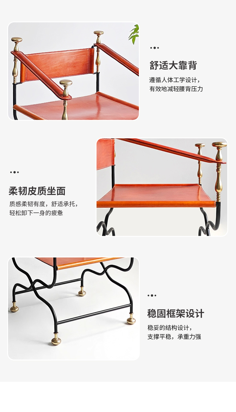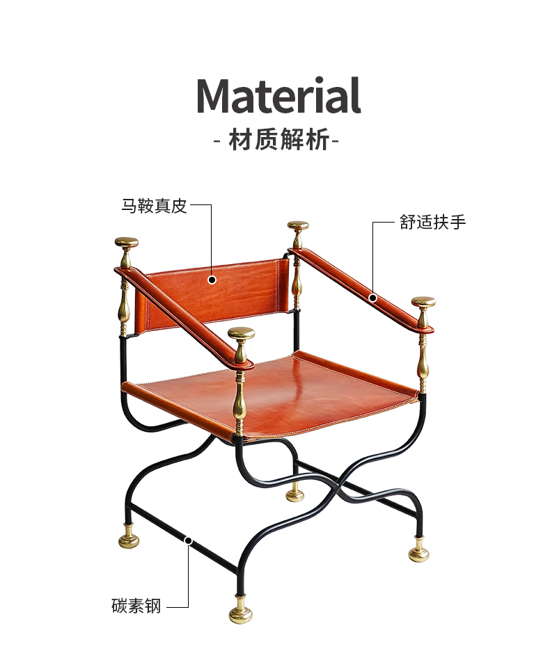 千匠一品 意式风格 碳素钢+马鞍真皮 马鞍革 时尚大气休闲椅YZ-077-J