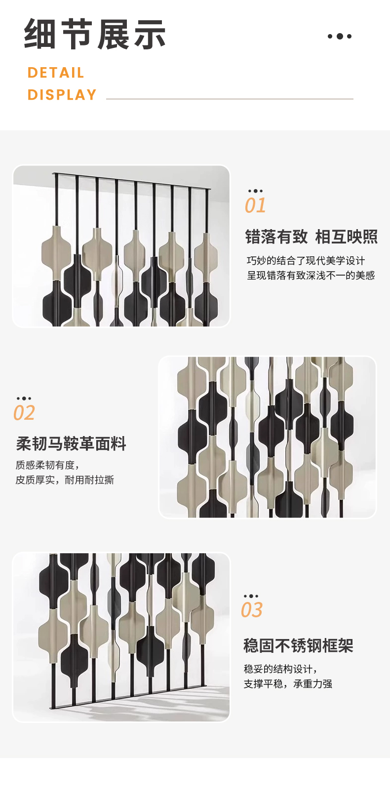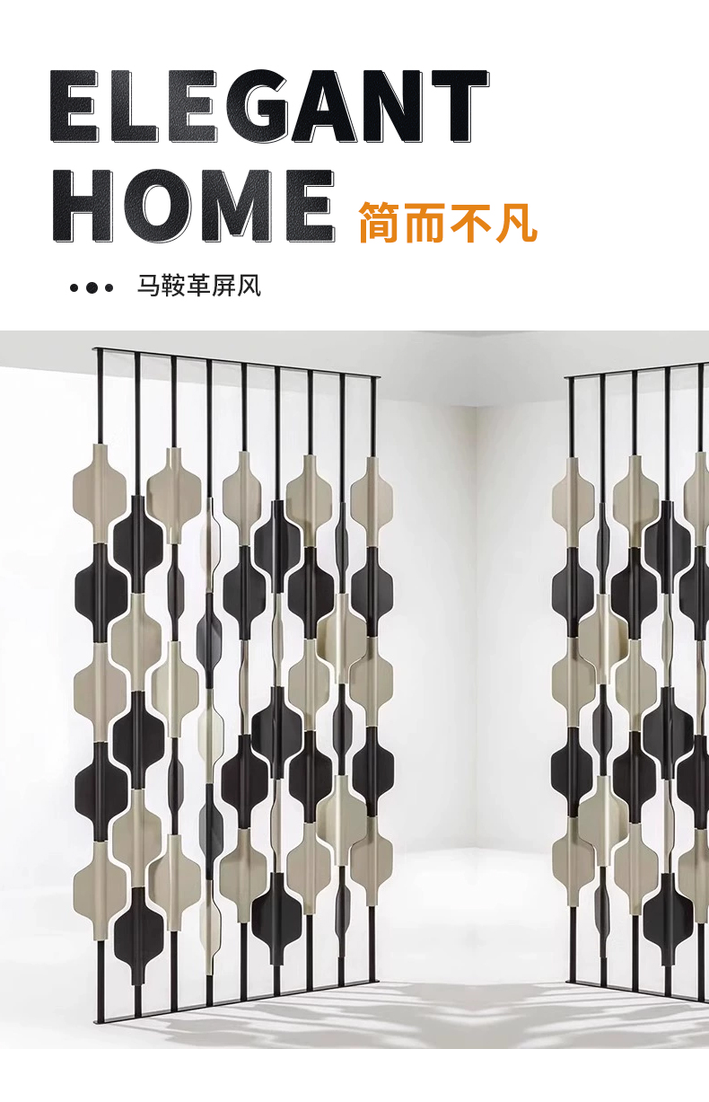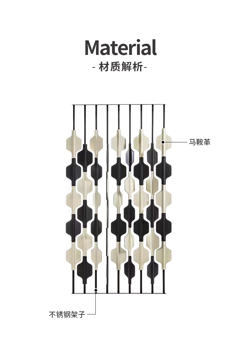 千匠一品 意式风格 马鞍革+不锈钢架 时尚大气屏风PF-001-J
