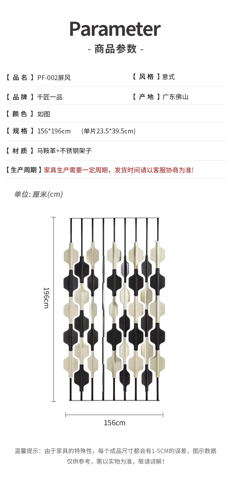 商品名称:千匠一品 意式风格 马鞍革+不锈钢架 时尚大气屏风PF-001-J