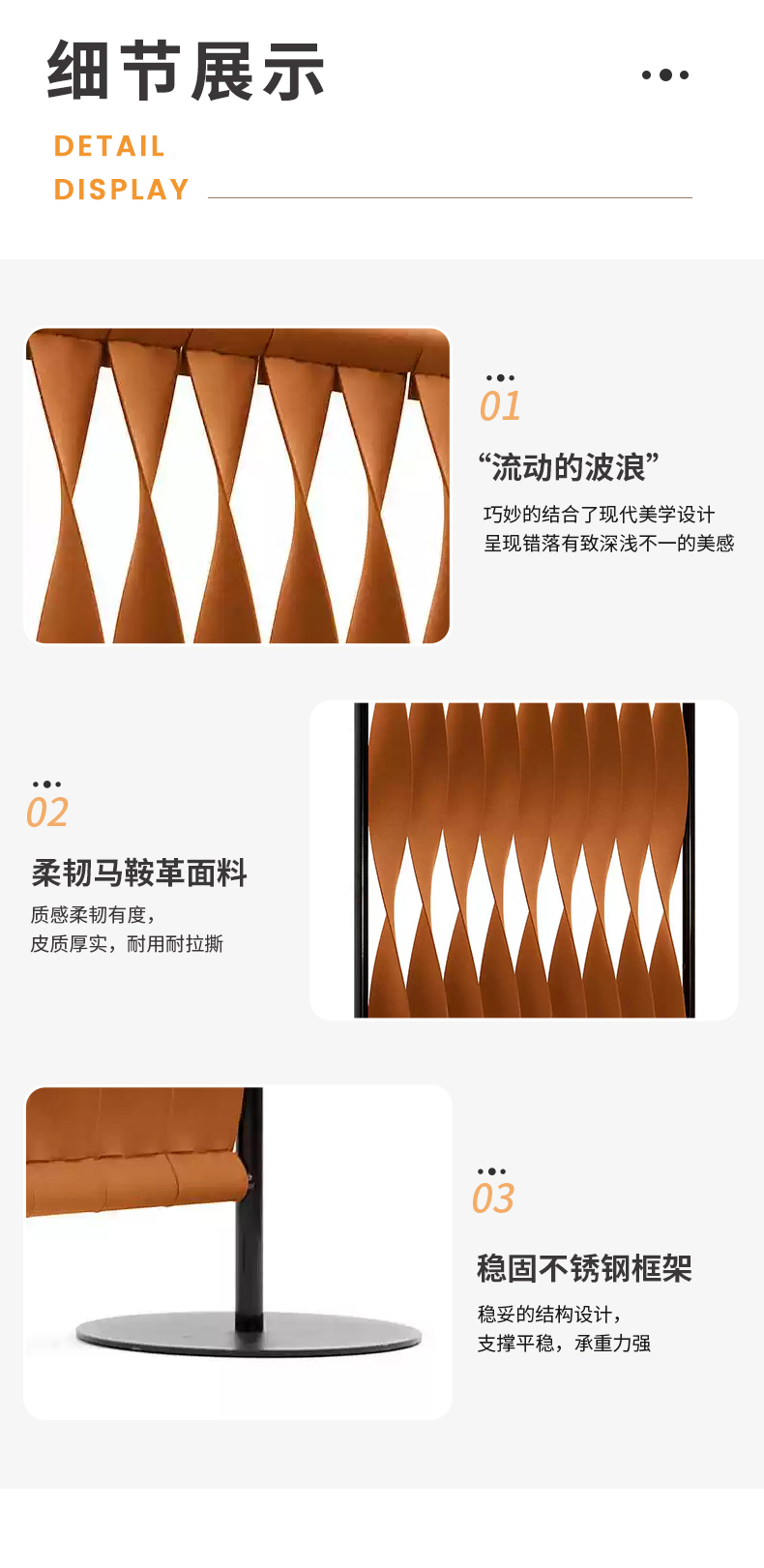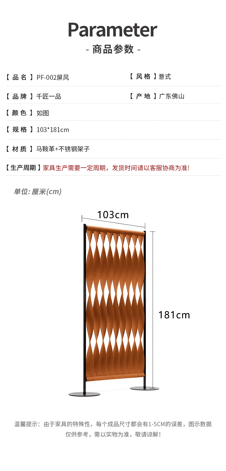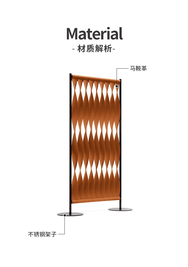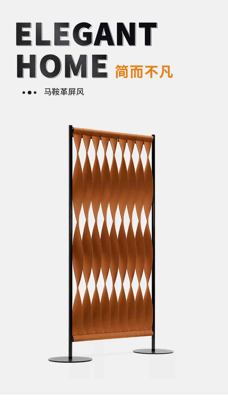千匠一品 意式风格 马鞍革+不锈钢架 时尚大气屏风PF-002-J