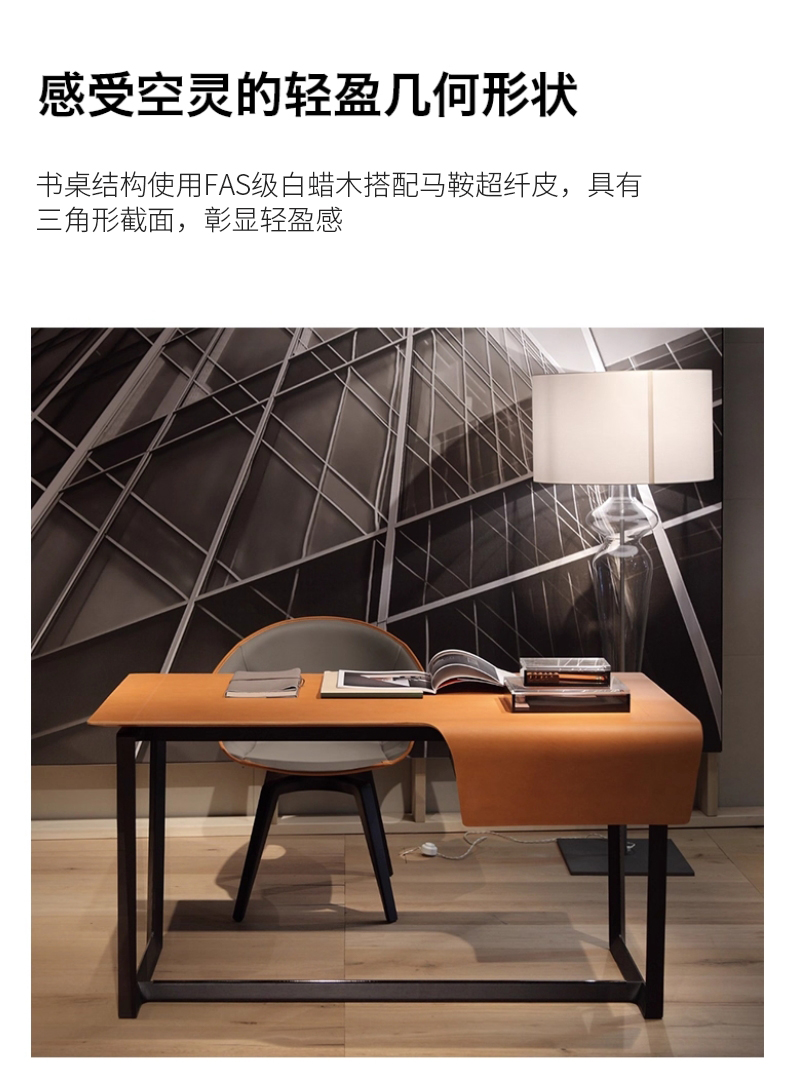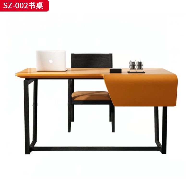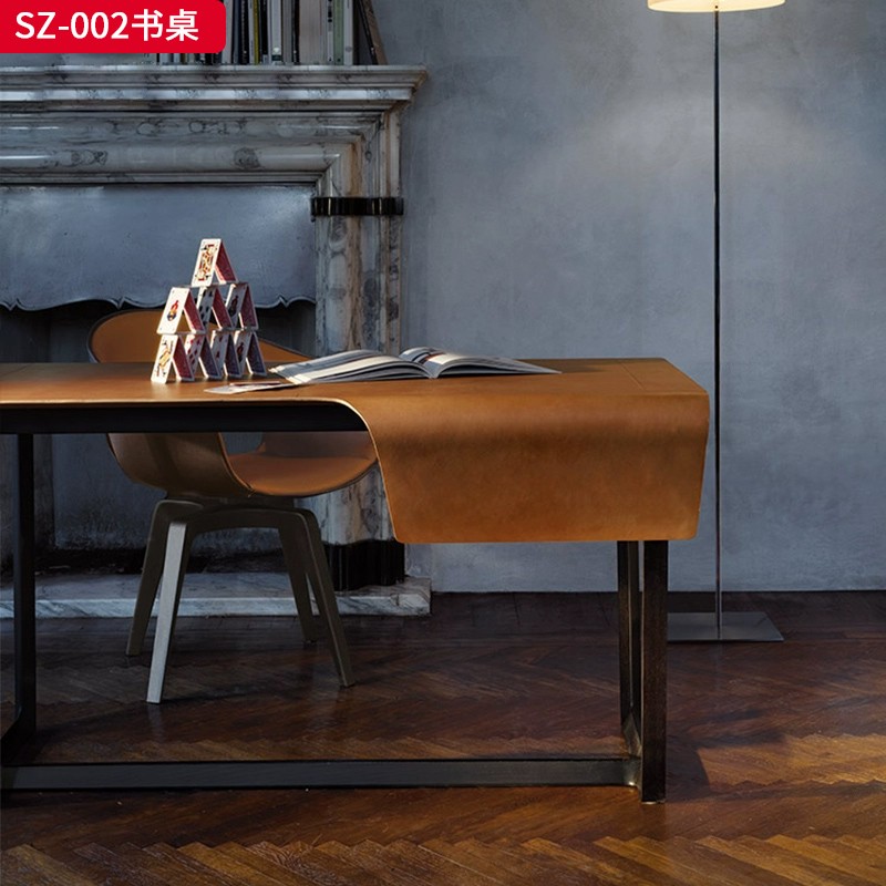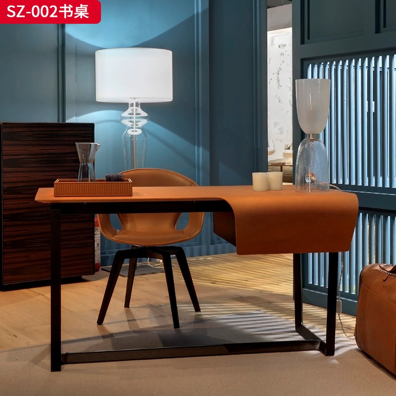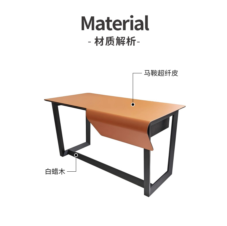 千匠一品 意式风格 白蜡木胡桃木色+马鞍超纤皮 马鞍革 时尚大气书桌SZ-002-J