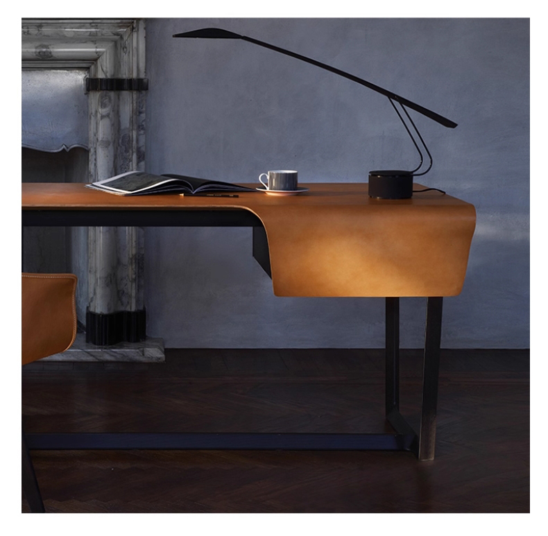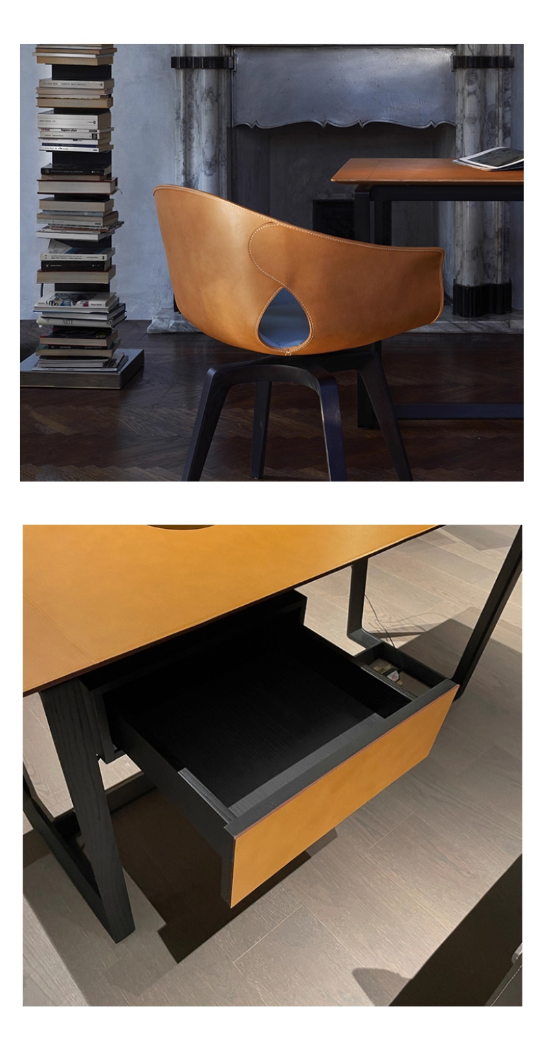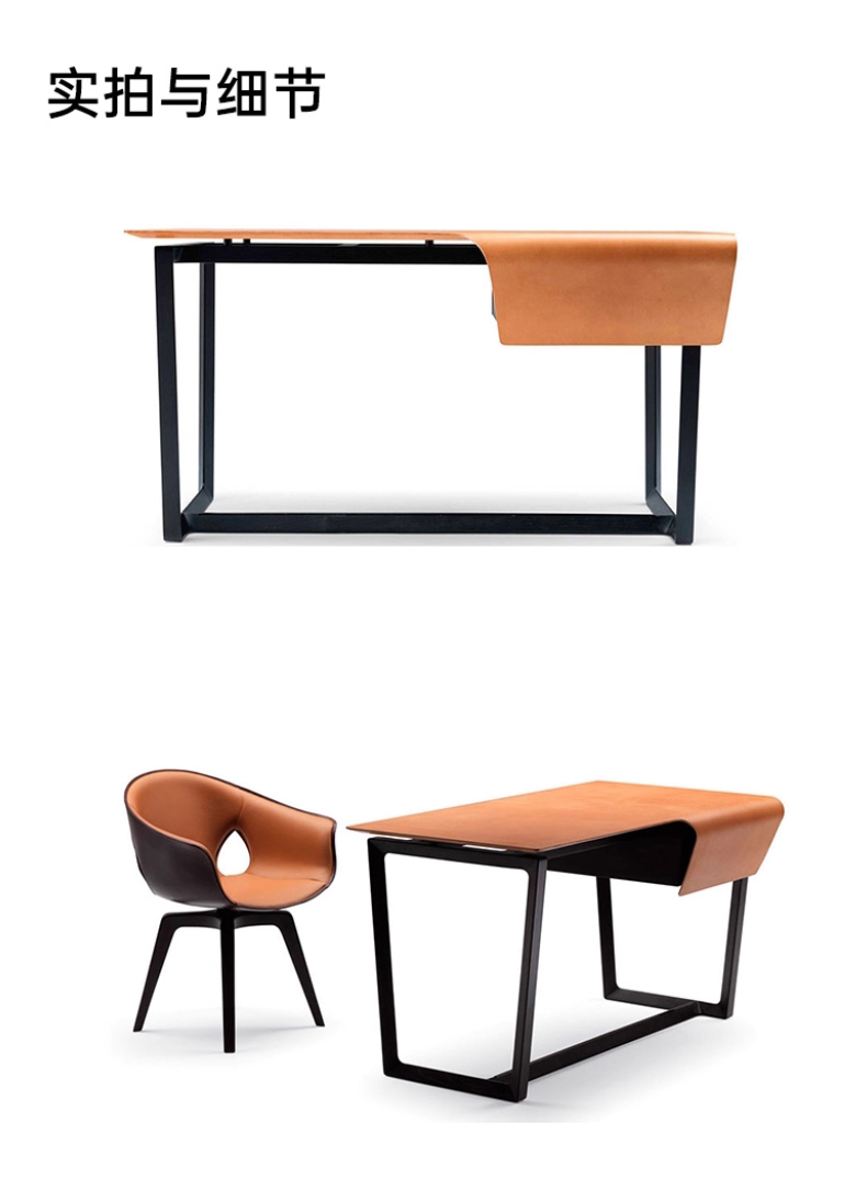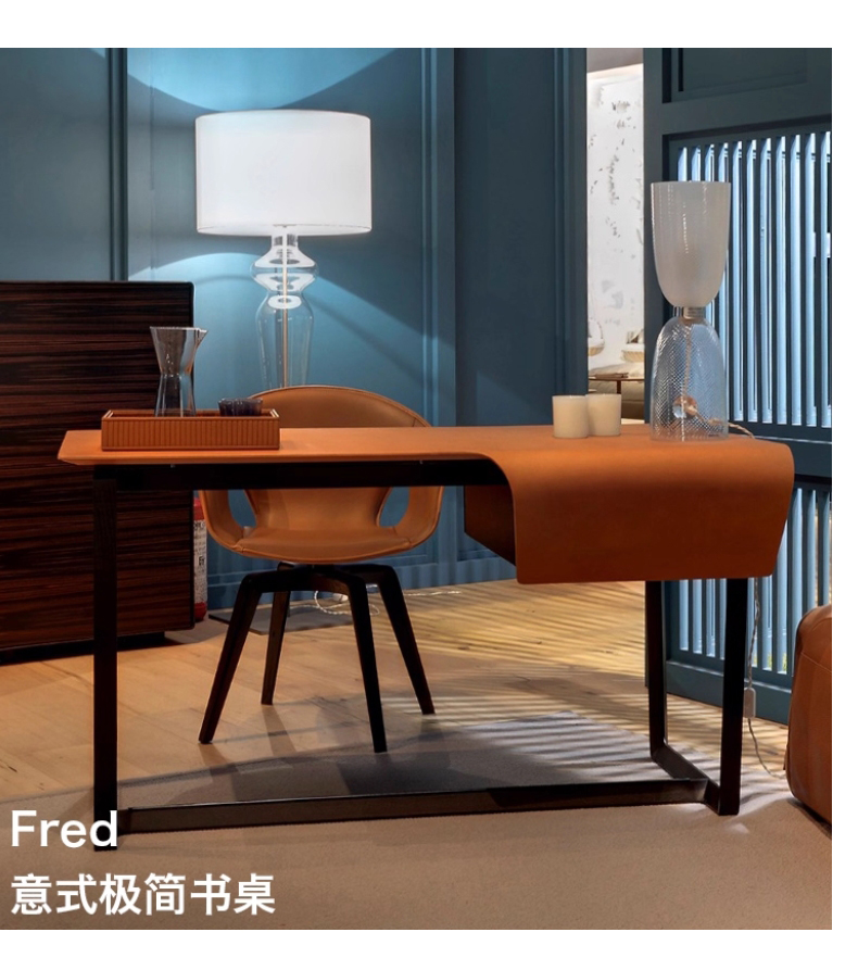 千匠一品 意式风格 白蜡木胡桃木色+马鞍超纤皮 马鞍革 时尚大气书桌SZ-002-J