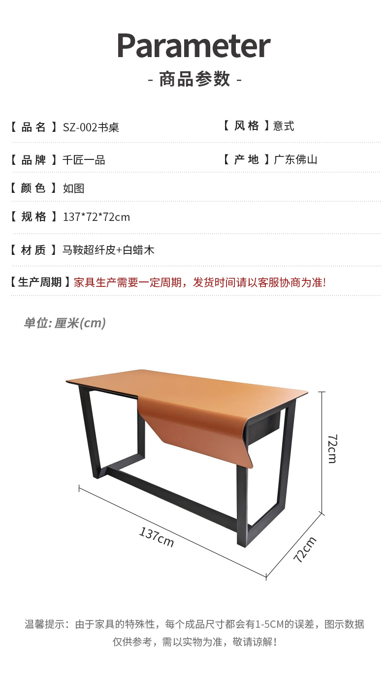 商品名称:千匠一品 意式风格 白蜡木胡桃木色+马鞍超纤皮 马鞍革 时尚大气书桌SZ-002-J